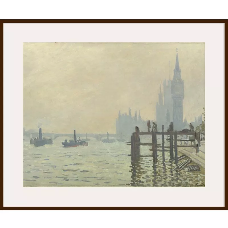 Claude Monet- Thames Below Westminster, Dark Brown Framed Print