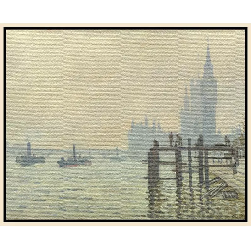 Claude Monet- Thames Below Westminster, Natural Ash Framed Canvas
