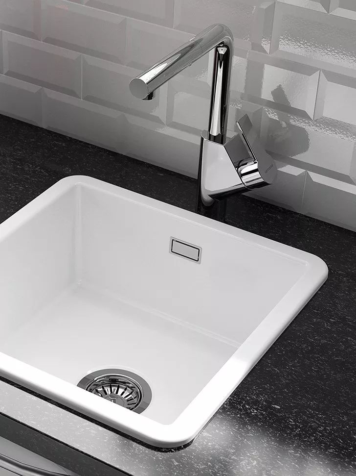 This versatile Small Single Bowl Ceramic Kitchen Sink from Clearwater can be undermounted for a seamless work surface, or inset for a practical finish.