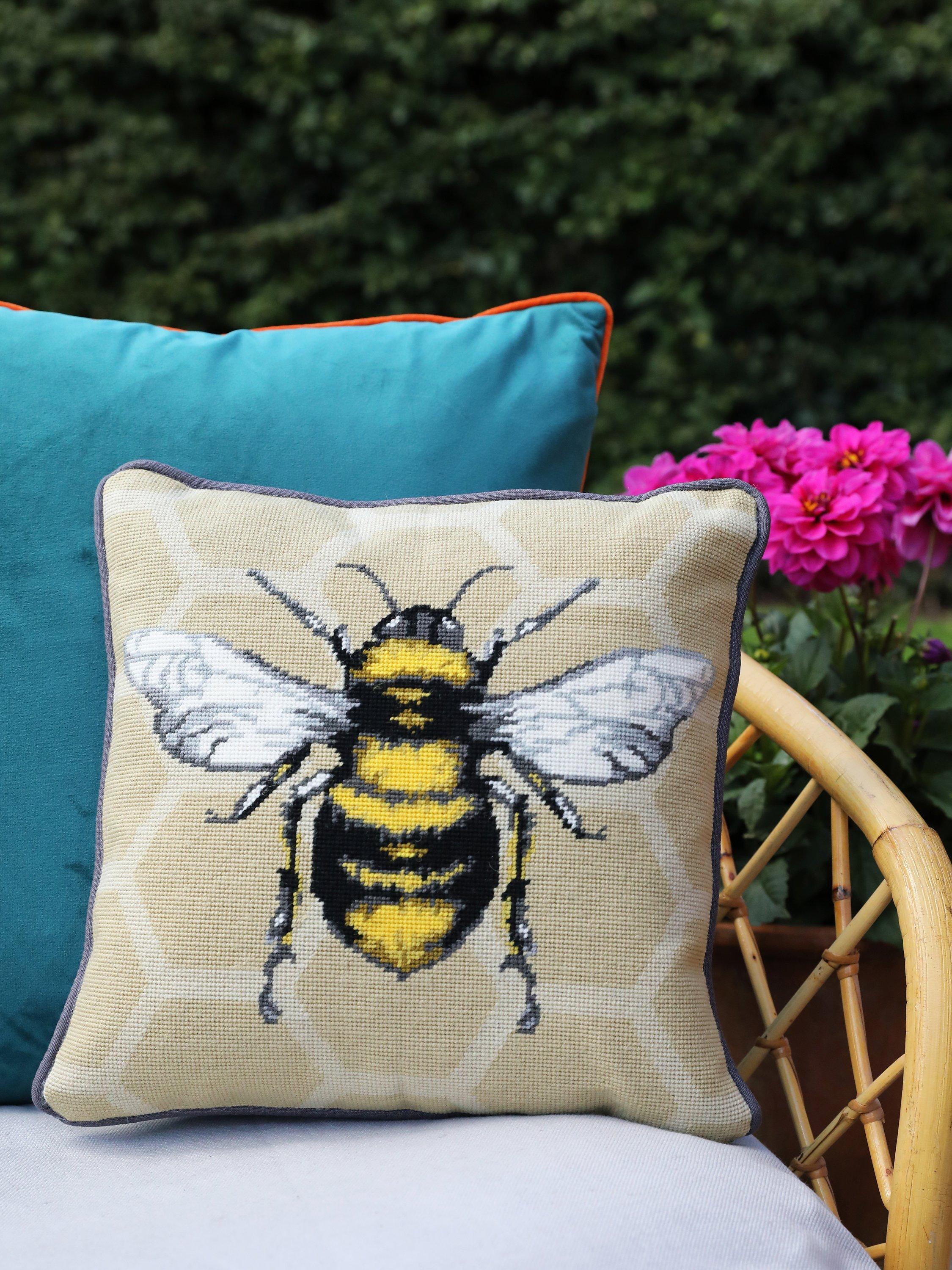 Suitable for intermediate crafters, this kit contains everything you'll need to create the bee design including printed 12 hpi canvas, Appletons wool, needle, colour and black and white charts for reference plus instructions to guide you through the process.