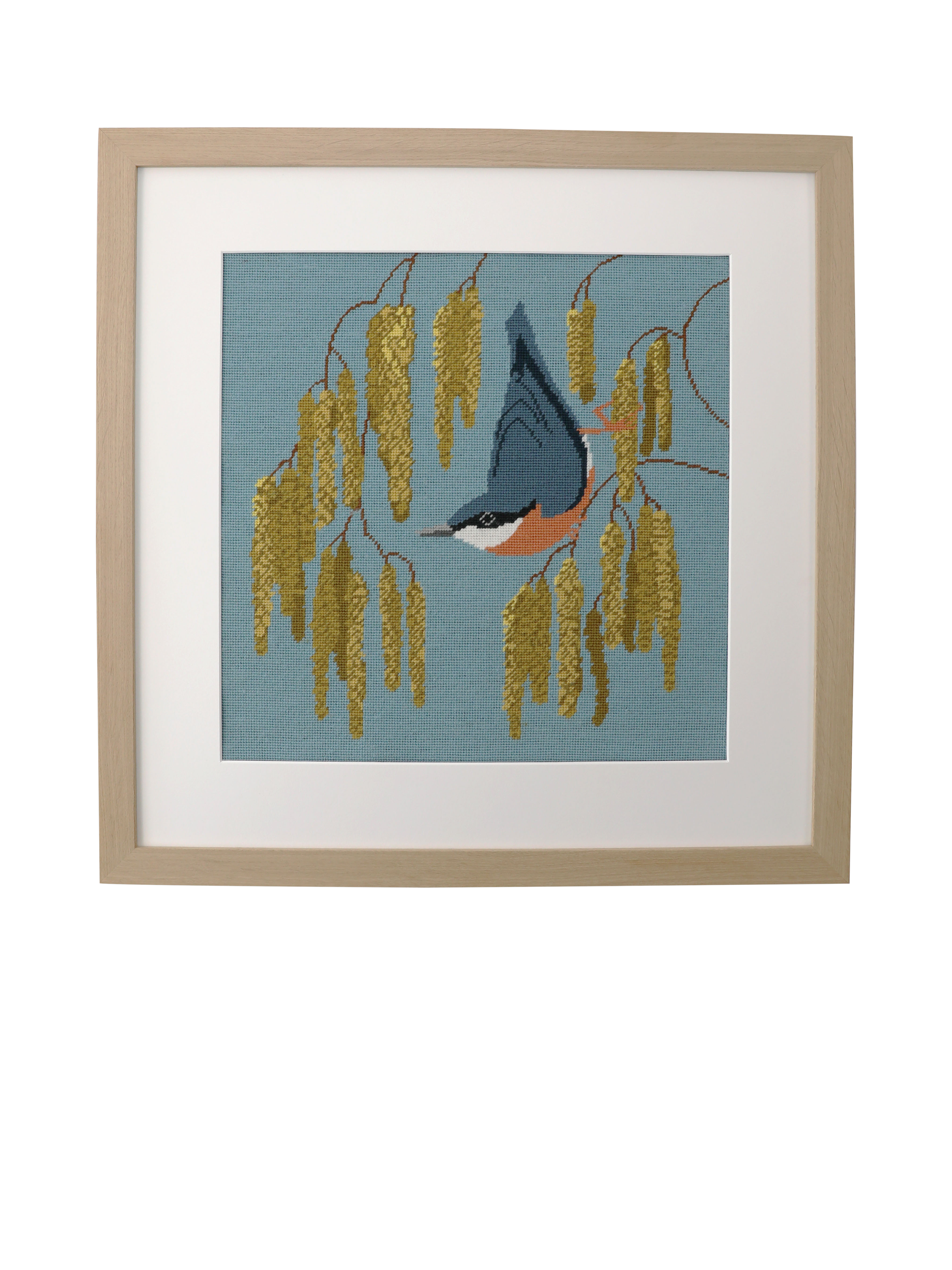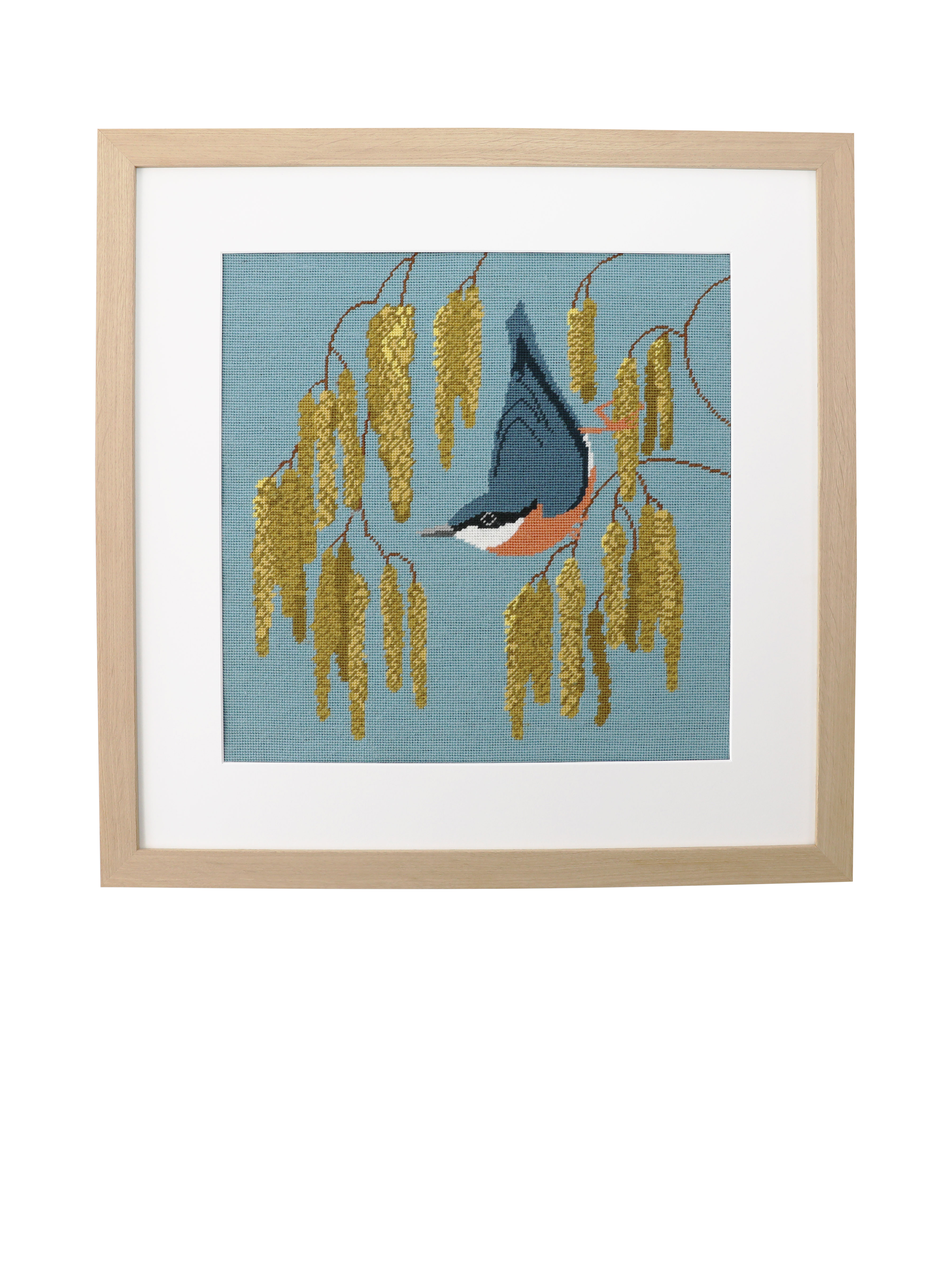 This beautifully detailed design captures a sweet moment in nature, when a vibrant nuthatch perches delicately among early spring catkins, rendered in soft, natural hues. Whether you’re a seasoned stitcher or new to the craft, this kit offers a satisfying and serene experience.