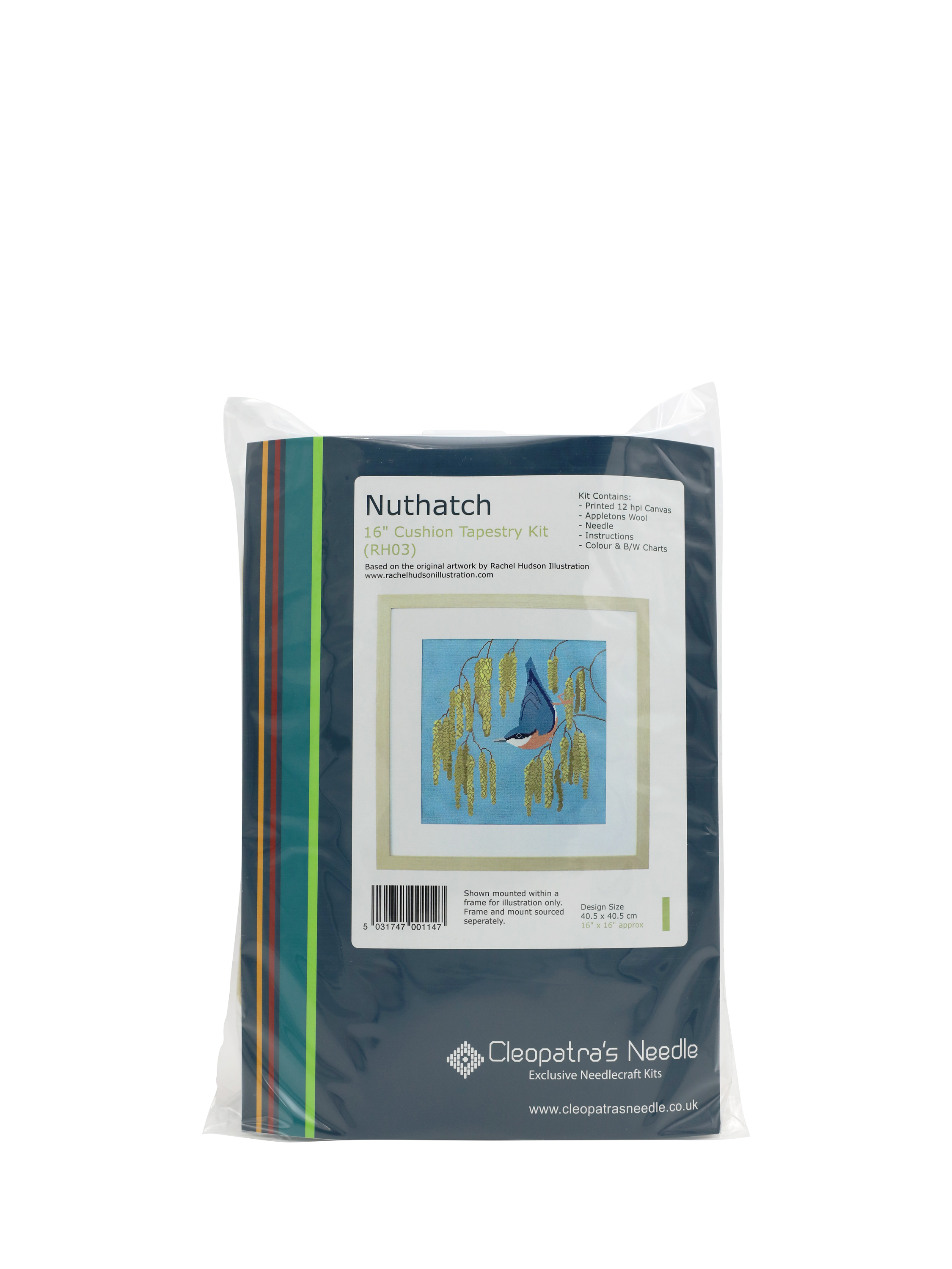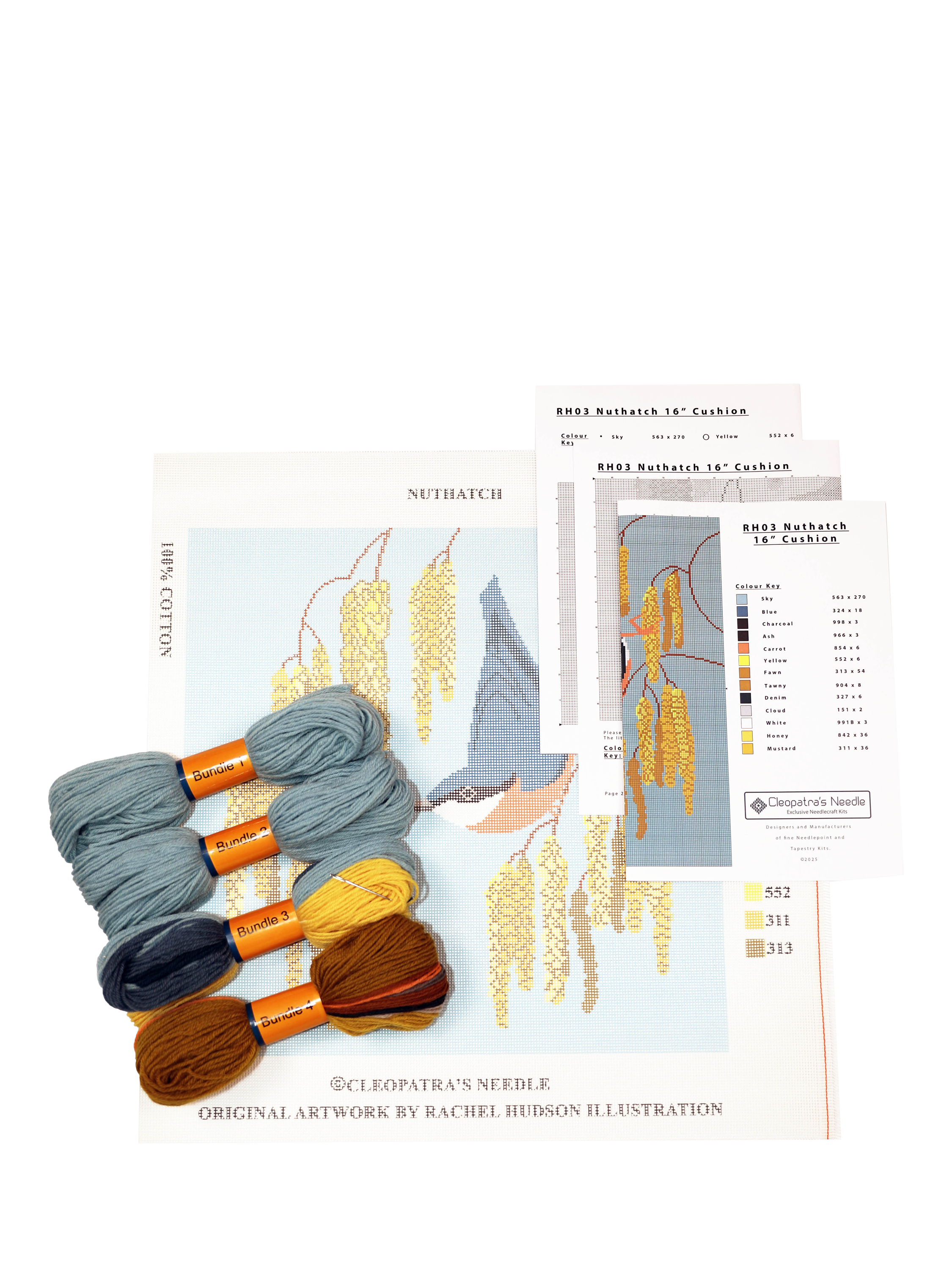 Kit contains 100% cotton 12-count canvas with full-colour printed design, Appletons tapestry wool in carefully selected shades, tapestry needle, full colour and black and white charts and stitching instructions.