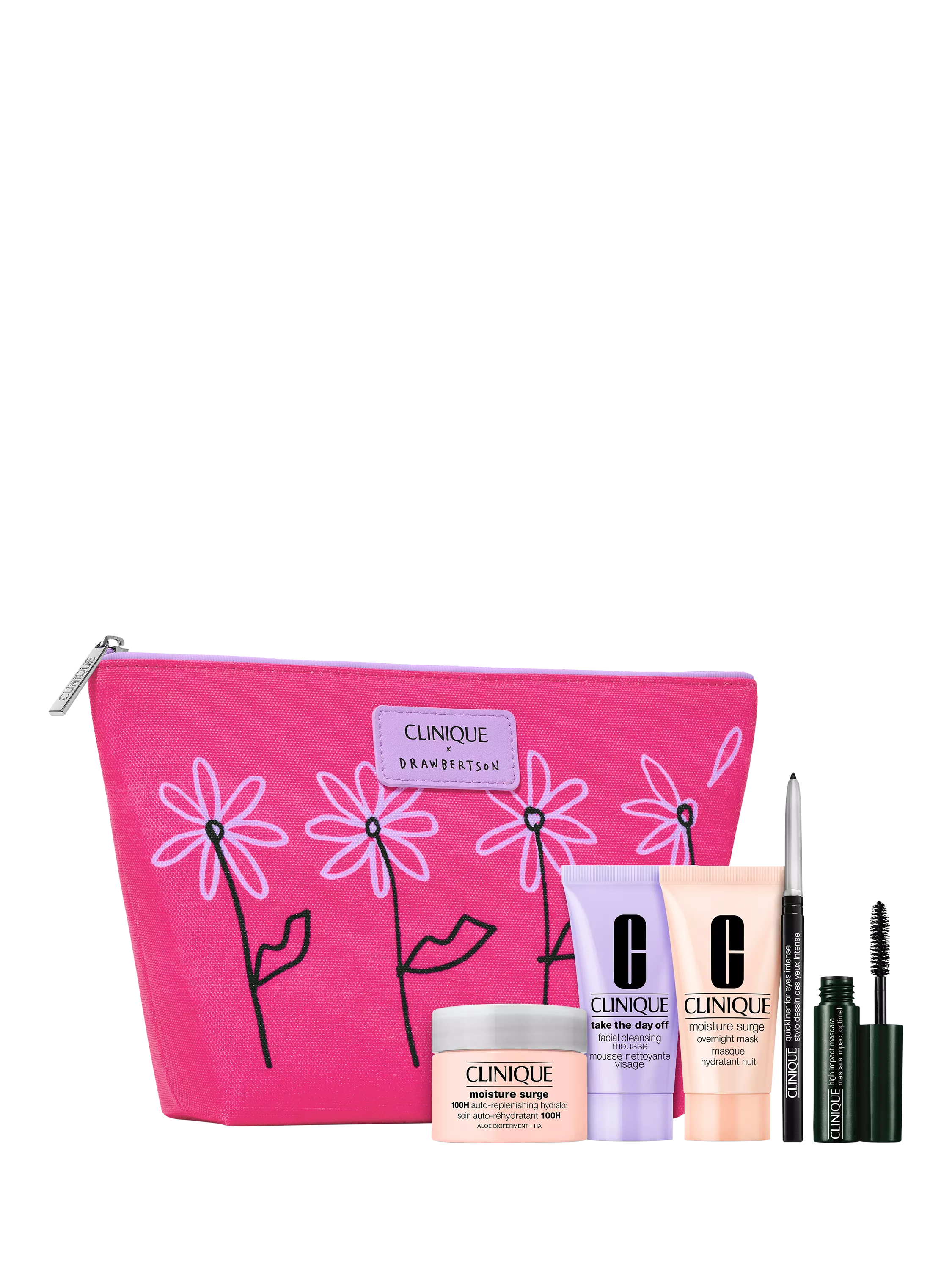 Perfect for travel, this spring-inspired makeup bag comes stocked with a selection of travel-friendly skincare and makeup must-haves, including the bestselling Moisture Surge™ moisturiser and a mini High Impact™ mascara.