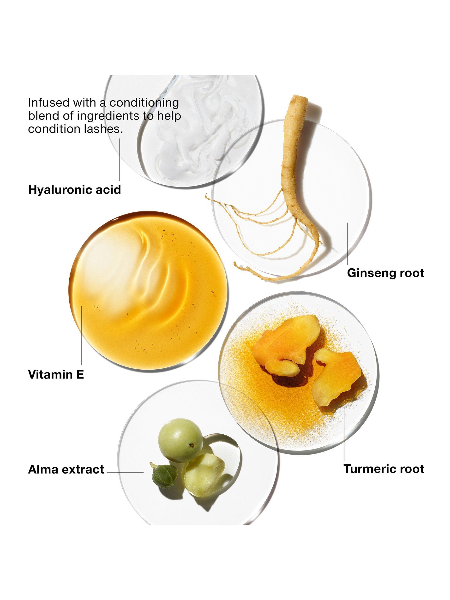 Conditioning blend, including hyaluronic acid, vitamin E, ginseng root, turmeric root, and alma extract, help condition lashes. Infused with Caffeine, arginine, acetyl carnitine, HCL, and peptides.
