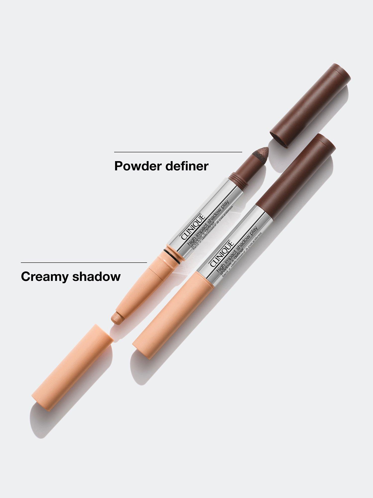 - On one side, a creamy shadow crayon gently glides on full colour in one swipe. On the other end, velvety powder with a precision sponge applicator lets you define and add dimension with ease