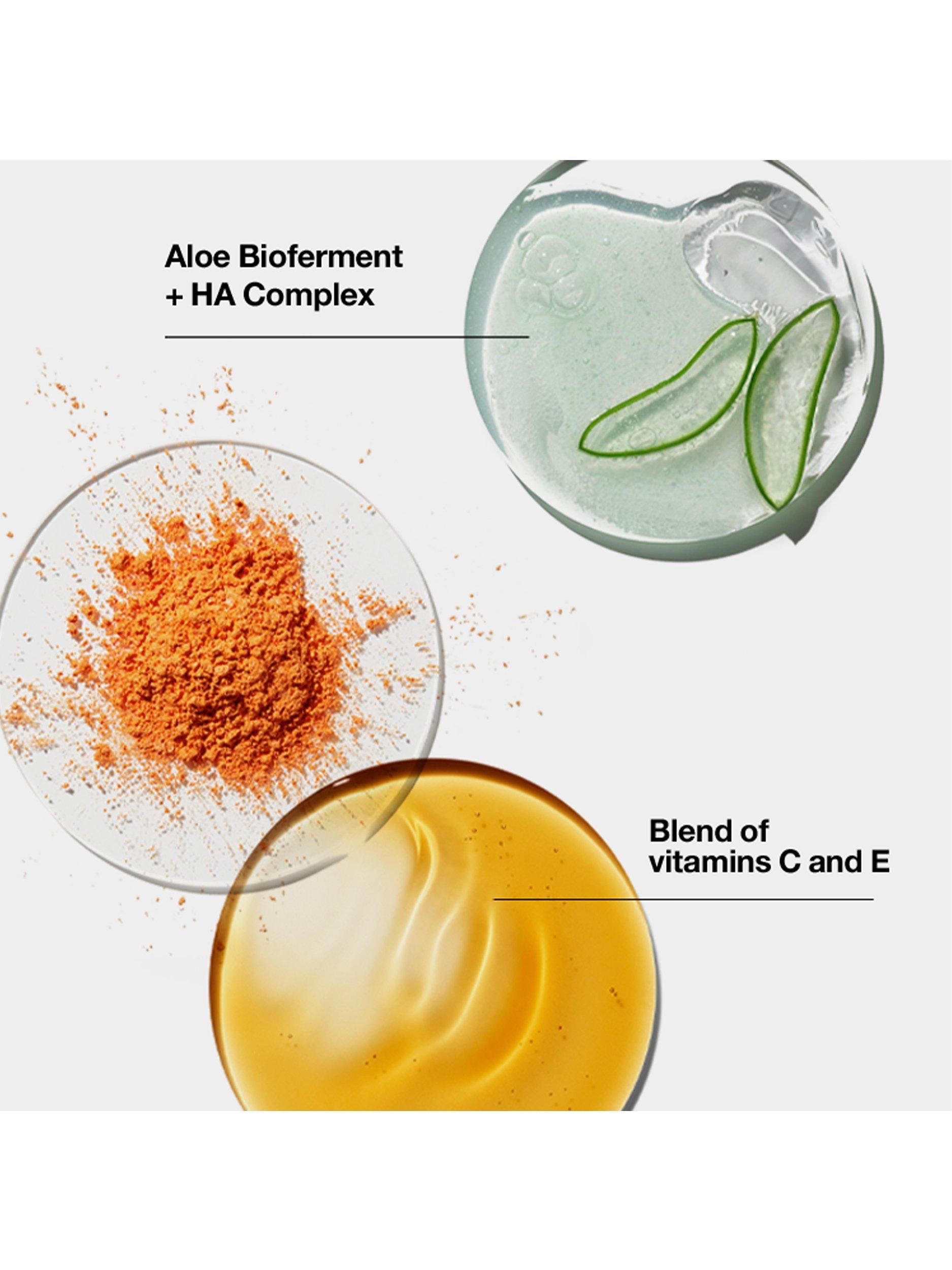 Aloe Bioferment: The aloe vera plant undergoes an exclusive fermentation process that breaks apart larger molecules into smaller ones, making them more easily absorbed into skin. Activated aloe water, and responsibly sourced and certified organic aloe extract powder, helps skin retain moisture.