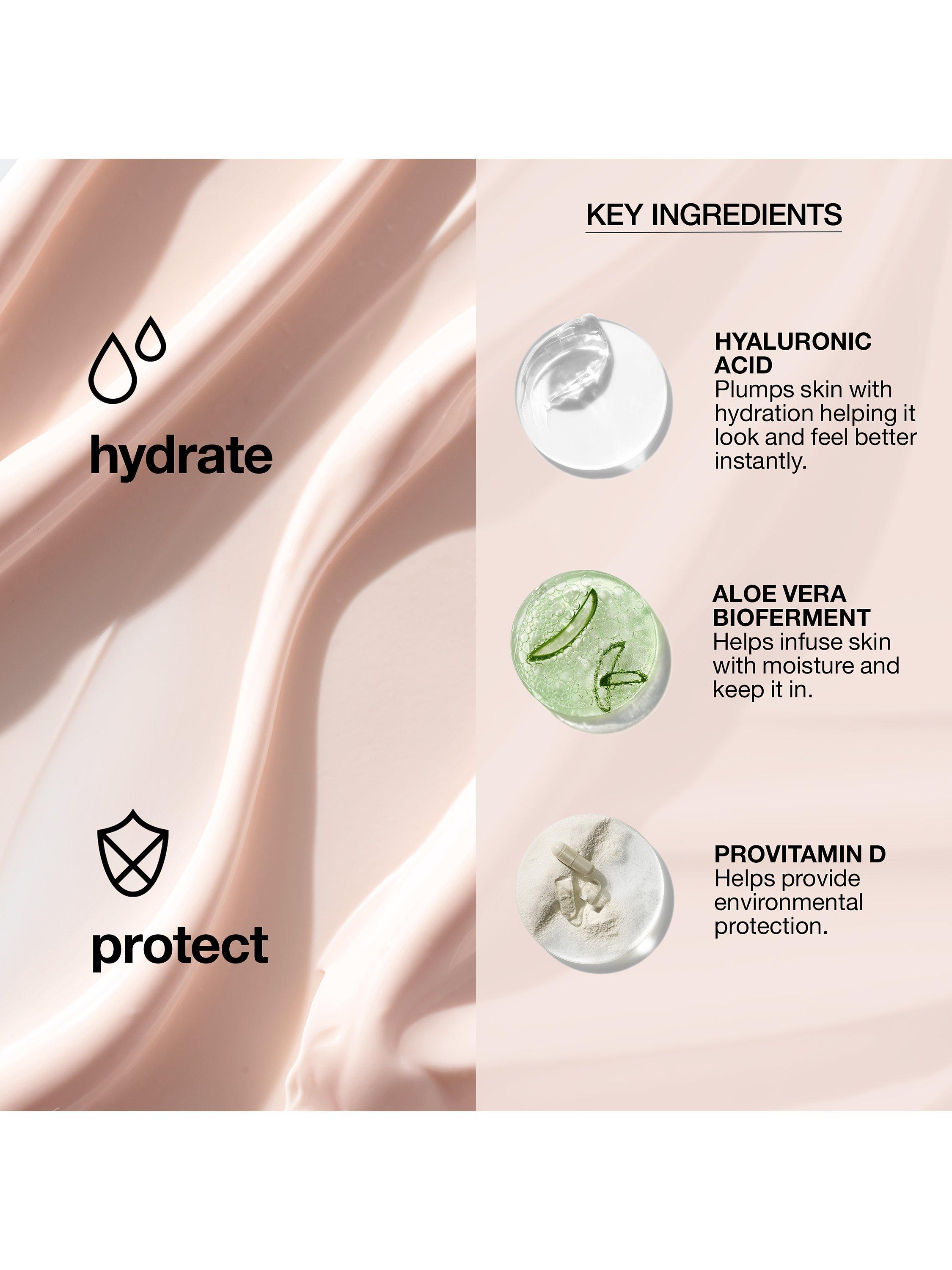 - This hydrating SPF moisturiser has a light cream texture with aloe vera bio-ferment + hyaluronic acid complex and pro-vitamin D that sinks into skin for deep, all-day hydration