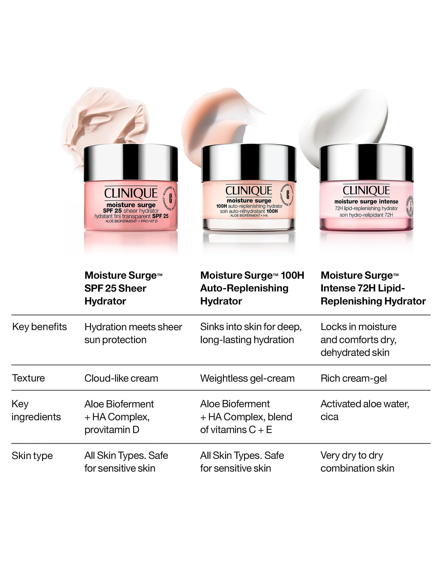 Light creamy moisturiser with SPF 25 delivers the hydration you love from Moisture Surge™, plus sheer sun protection without a white cast – even for deep skin tones. Safe for sensitive skin and oil-free, it's perfect for daily wear creating a smooth canvas for makeup.
