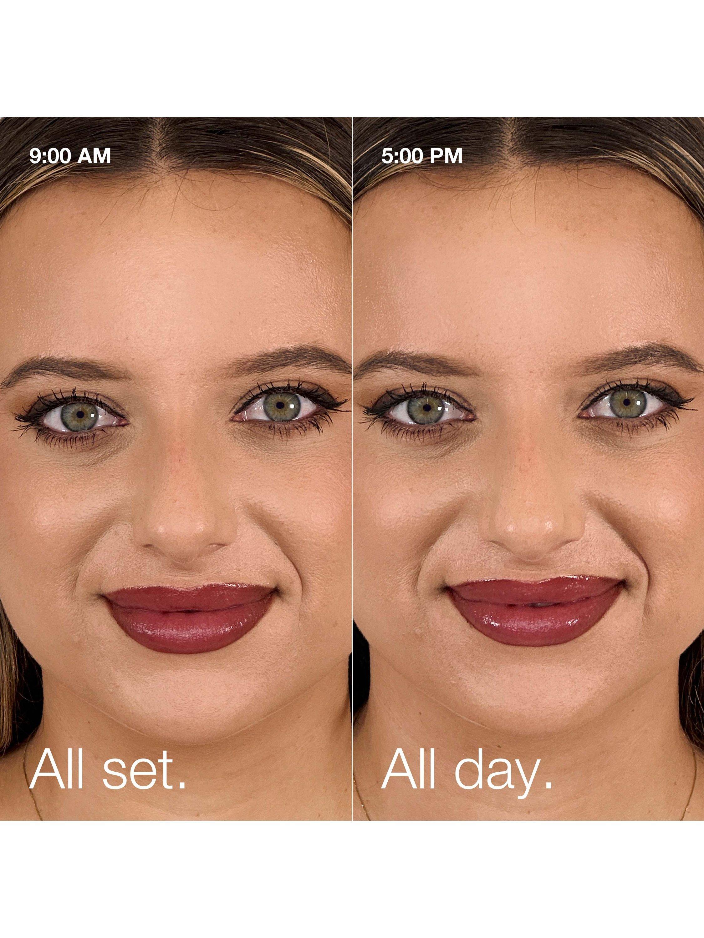 - Alcohol-free formula sets makeup all day to keep it looking fresh