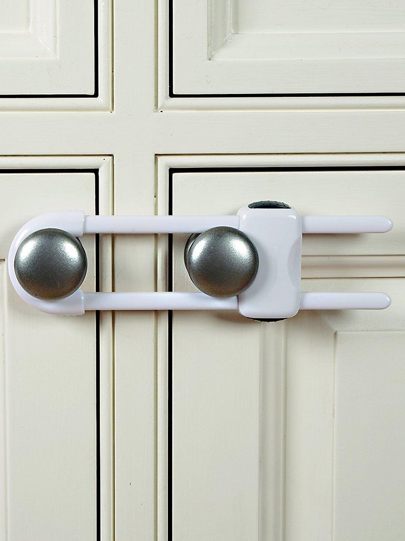 This lock helps keep curious little hands out of double cupboard doors for their safety and your peace of mind.