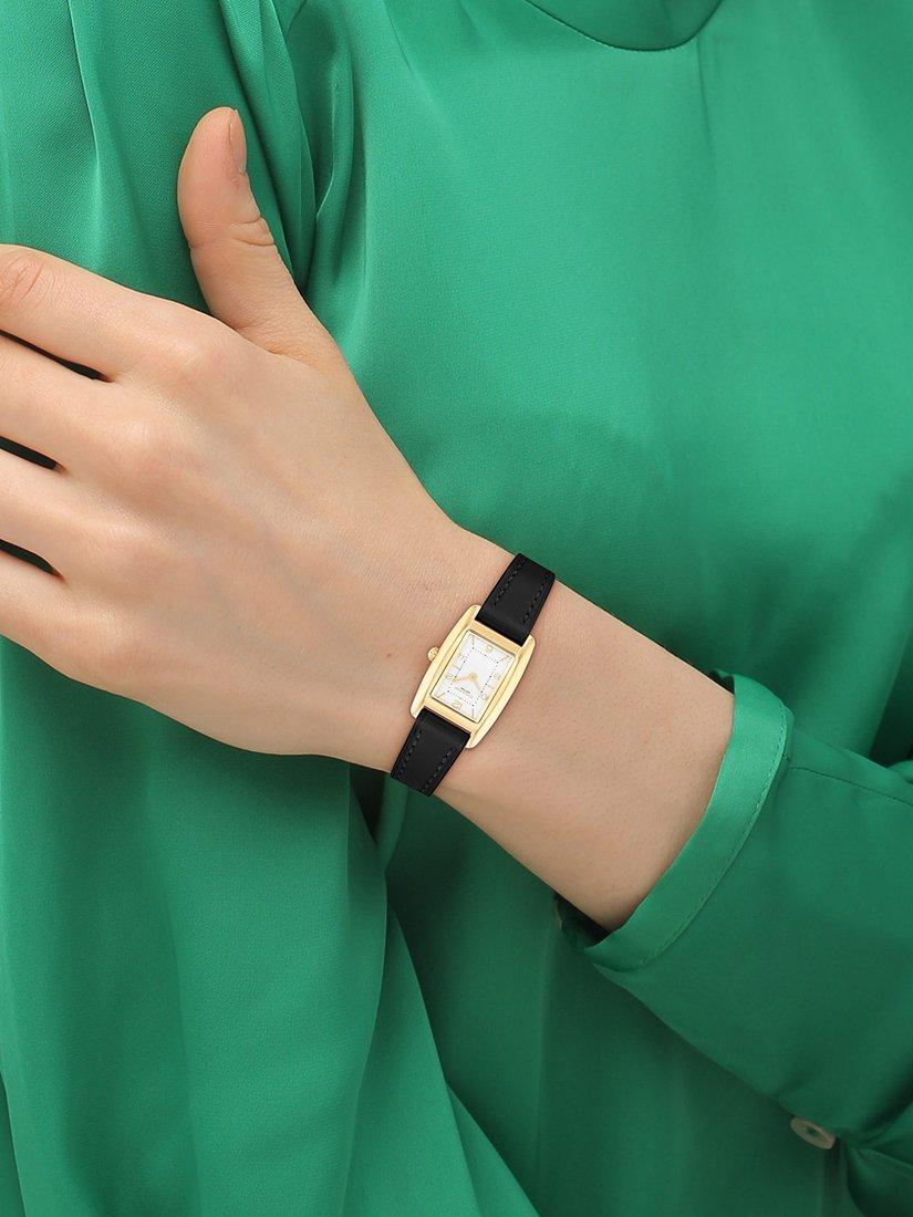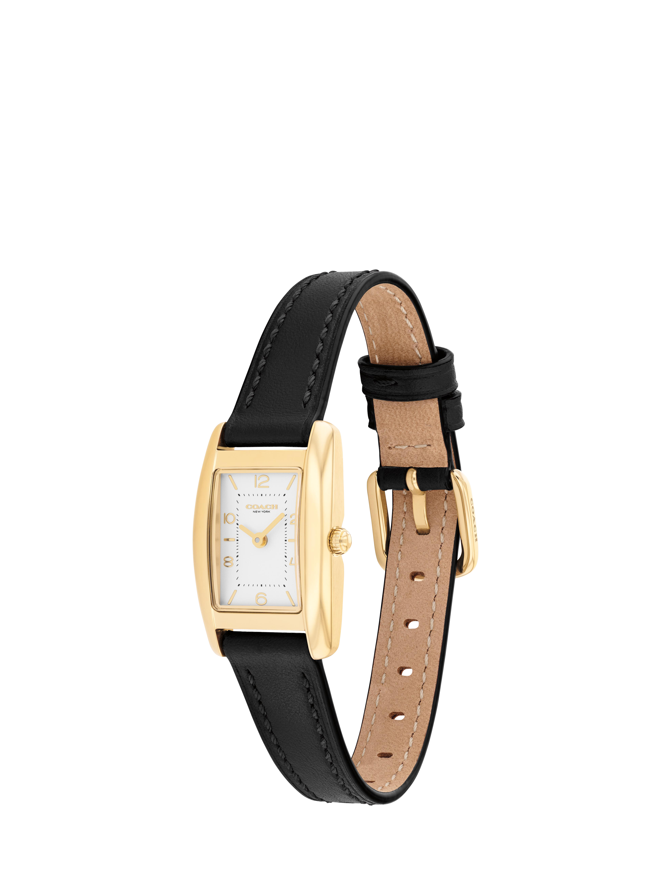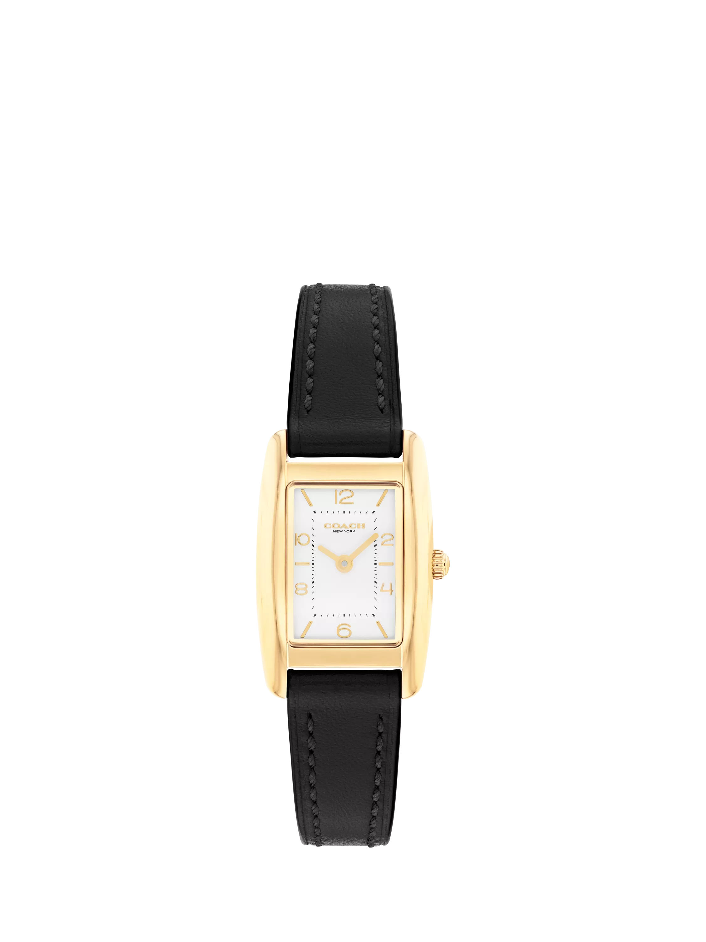 A luxurious addition to your timepiece collection, this watch from Coach features a polished gold IP 20x30mm rectangular case, silver-white dial and pure leather strap.