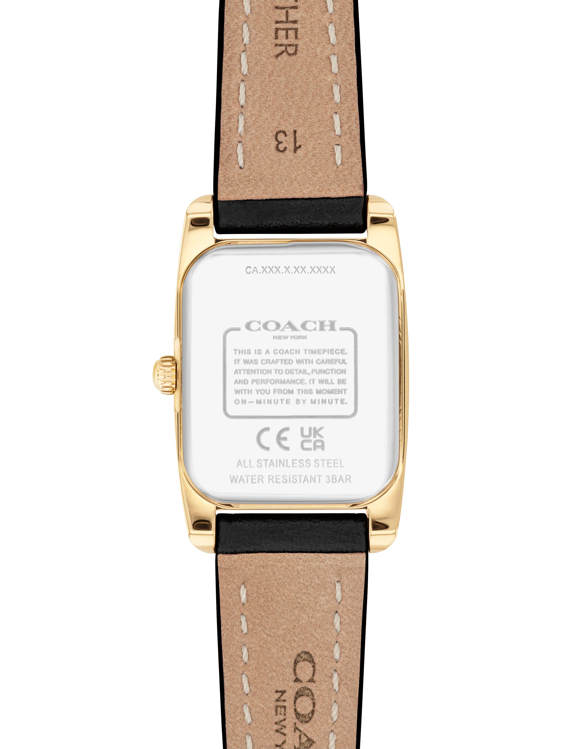 Coach14504647 Women's Rectangular Leather Strap Watch, Black