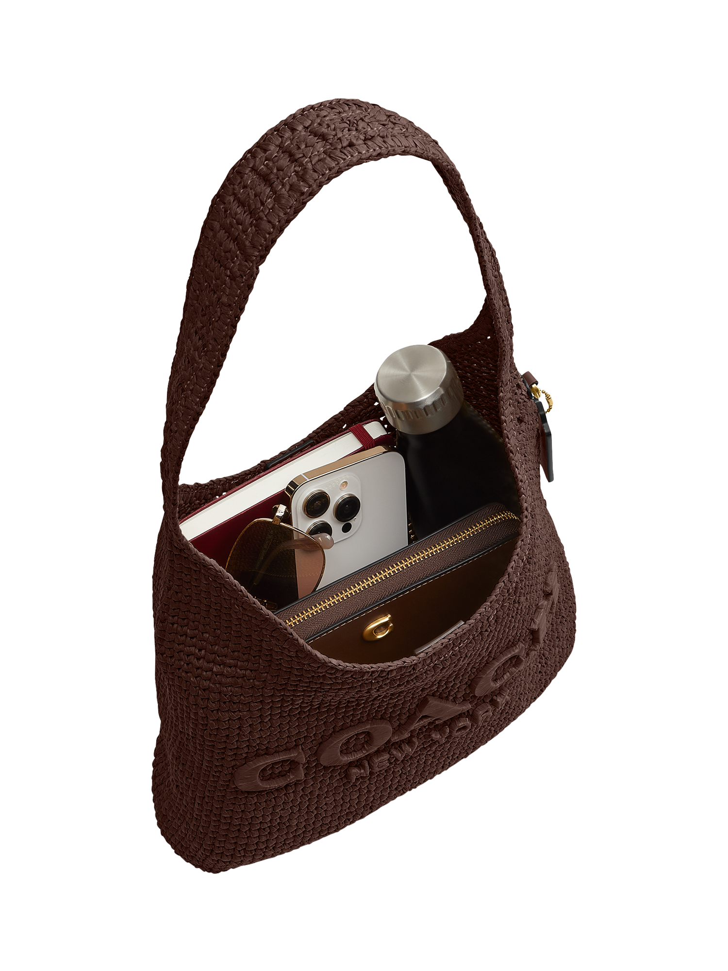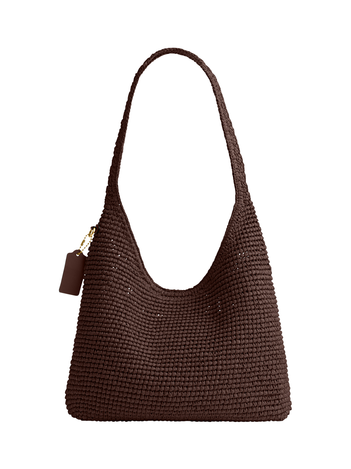 The Brooklyn is an elegant, minimalist silhouette—with a distinctly New York attitude. The small-sized hobo style is crafted of lightweight straw woven with a beautiful textural feel and finished with our tonal Coach graphic. Featuring a spacious interior with a snap pocket for access to essentials, the streamlined 28 has a comfortable, wide shoulder strap and an easy magnetic snap closure.
