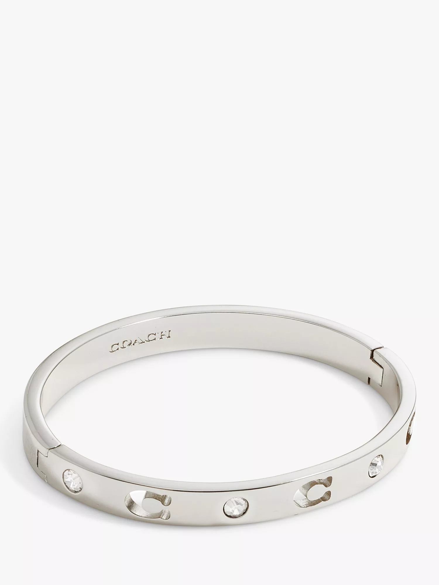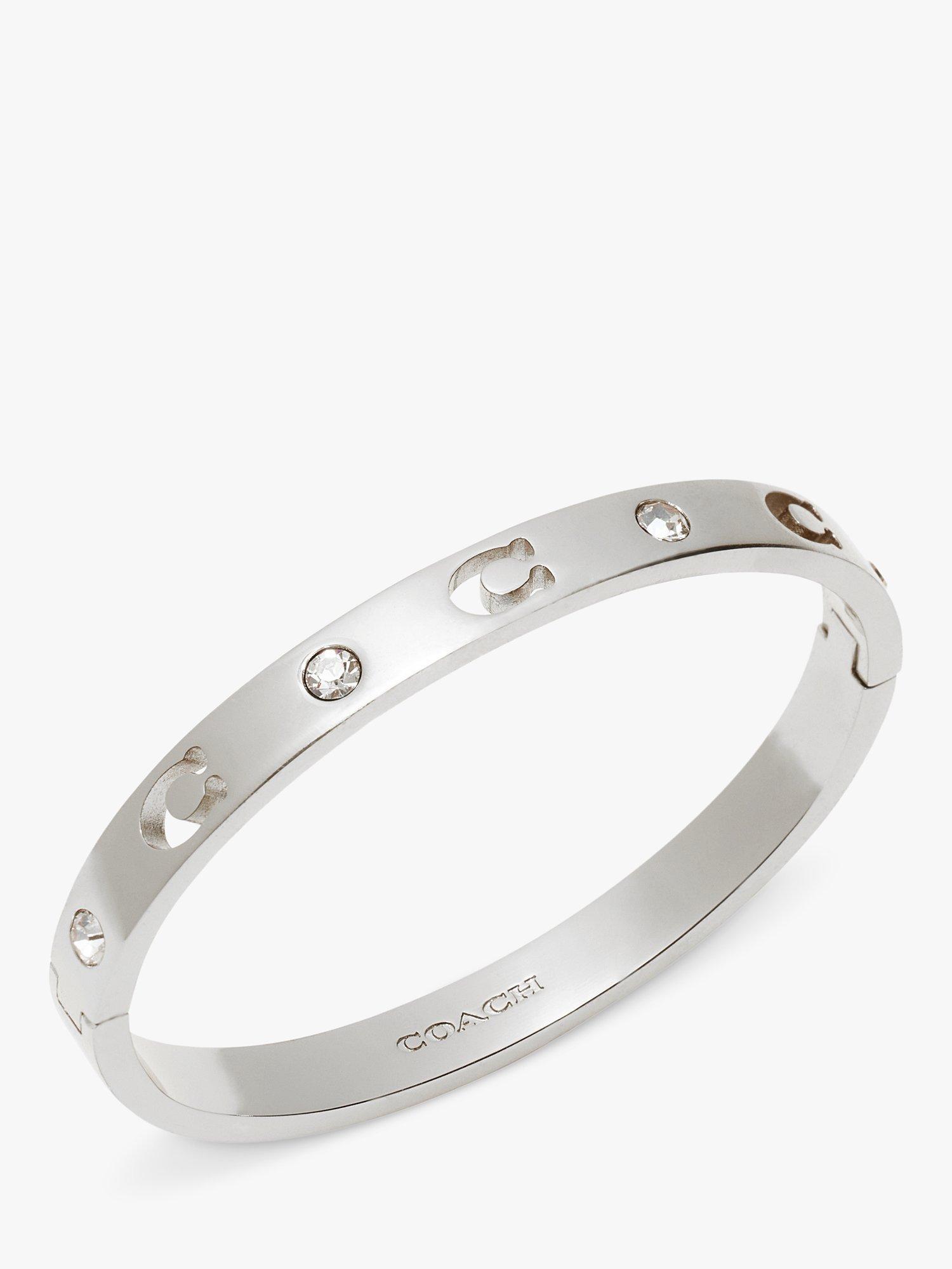 Slipping on anywhere from your wrist to your upper arm, this bangle from Coach sparkles with crystals and.