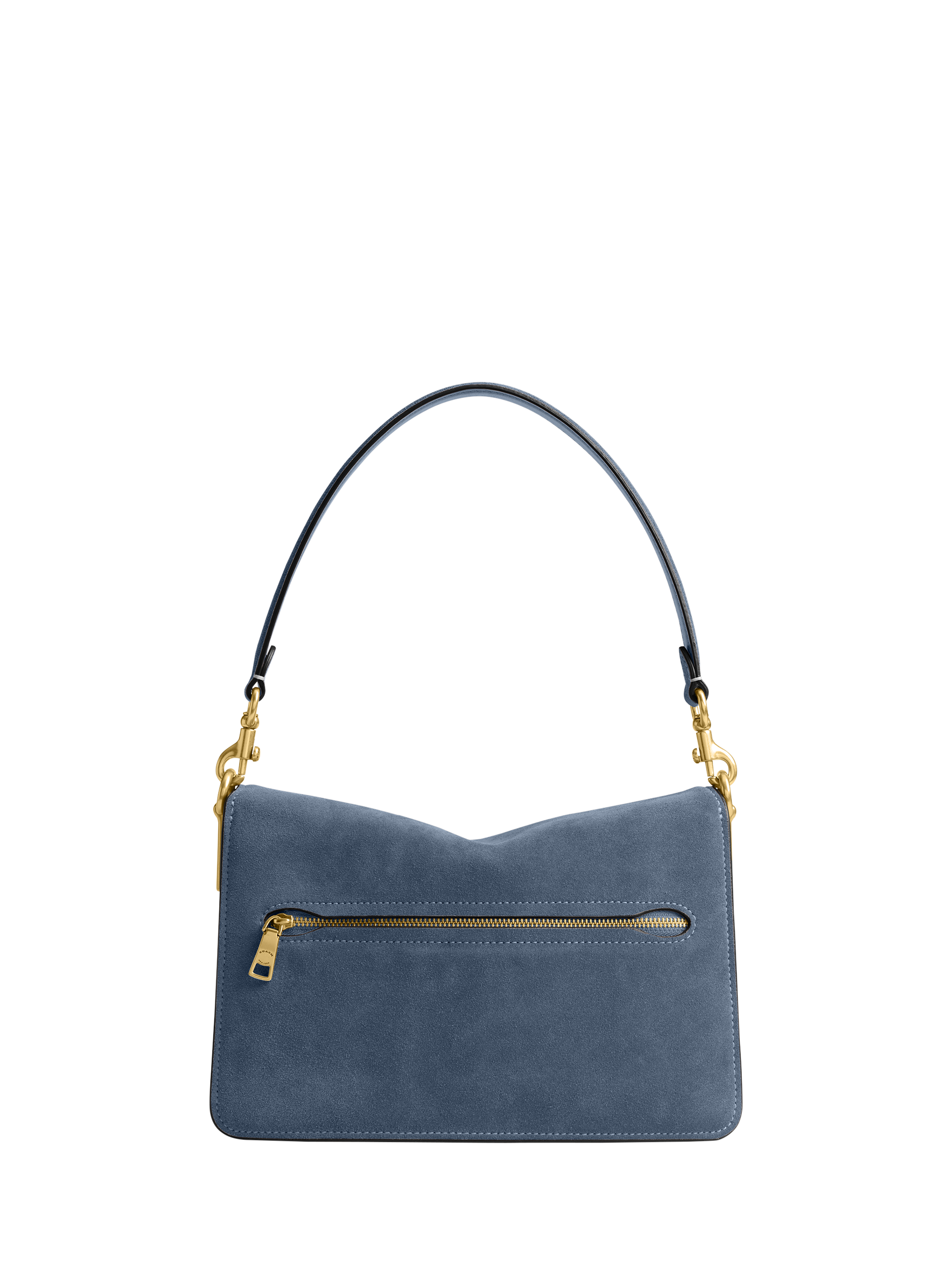 A modern take on an archival 1970s Coach design, the structured Chain Tabby shoulder bag is crafted of velvety soft suede. Finished with the brand's Signature hardware for an iconic touch, the compact style has space for all the essentials, inside multifunction organizational pockets and a convenient outside zip pocket for easy access items. The versatile design is finished with three detachable straps to carry by hand, wear snug on the shoulder with the elegant stitched chain-link strap and short leather strap or go hands-free with the long leather crossbody strap.