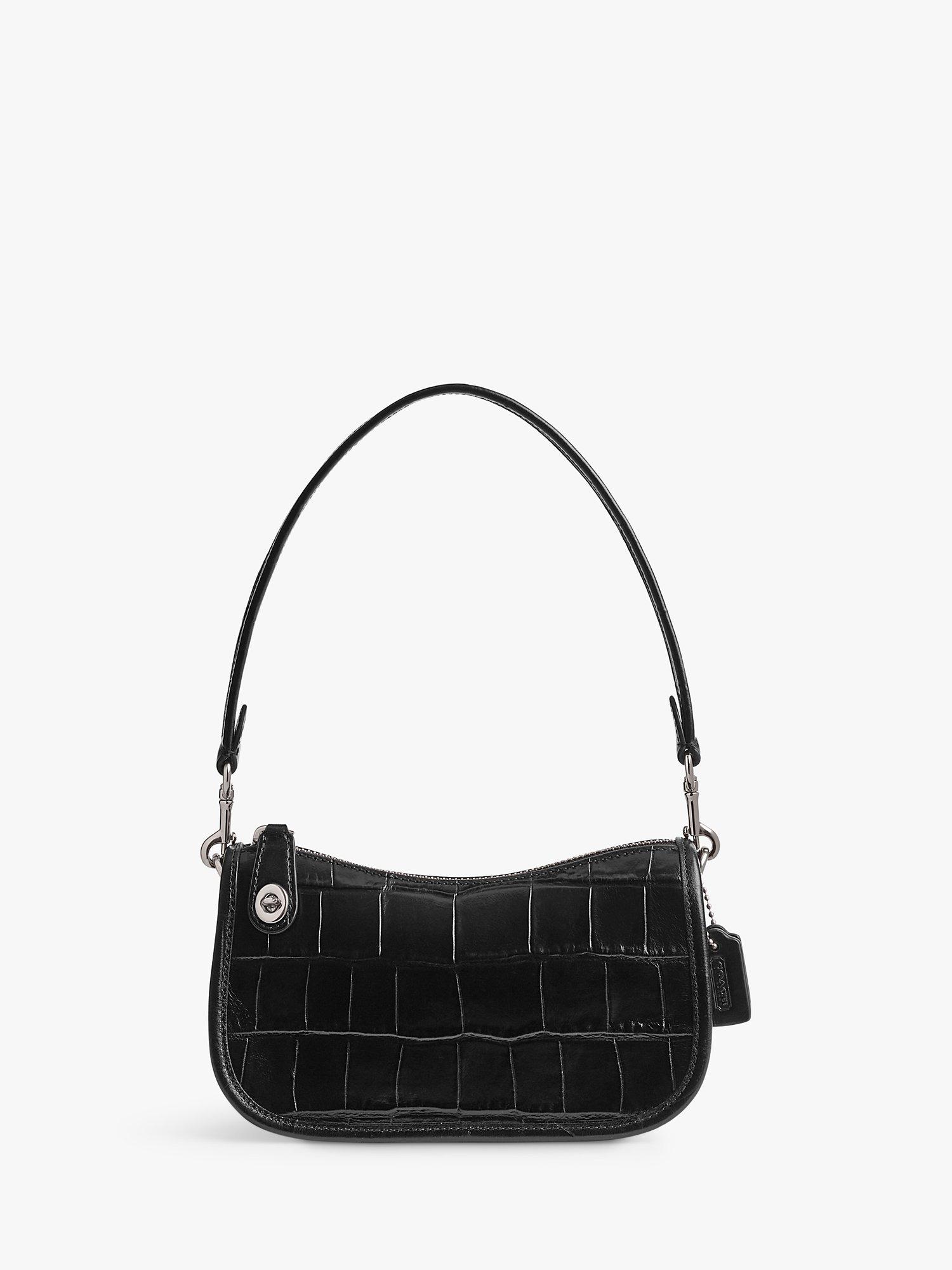 CoachCroc Leather Shouder Bag, Black