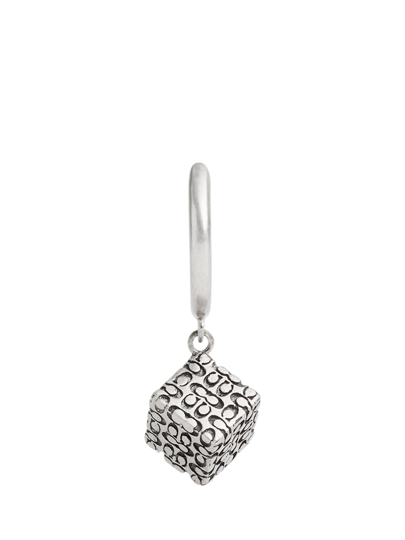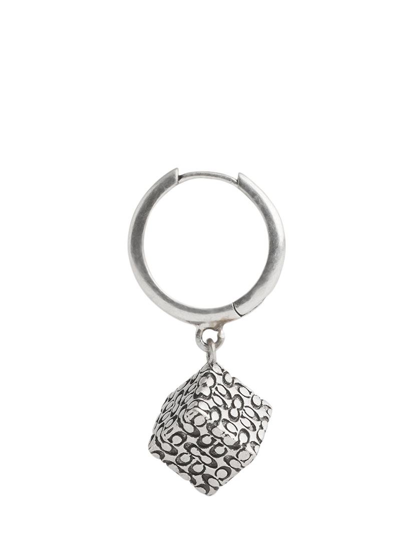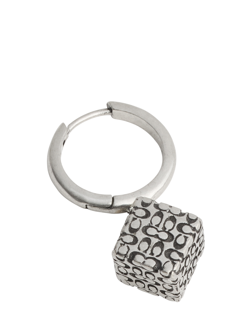 A stunning design by Coach, this singular huggie hoop earring features a dangling cube bead adorned with a quilted signature sculpted C motif. With a post fitting, this piece is for pierced ears only. Includes a signature Coach jewellery pouch.