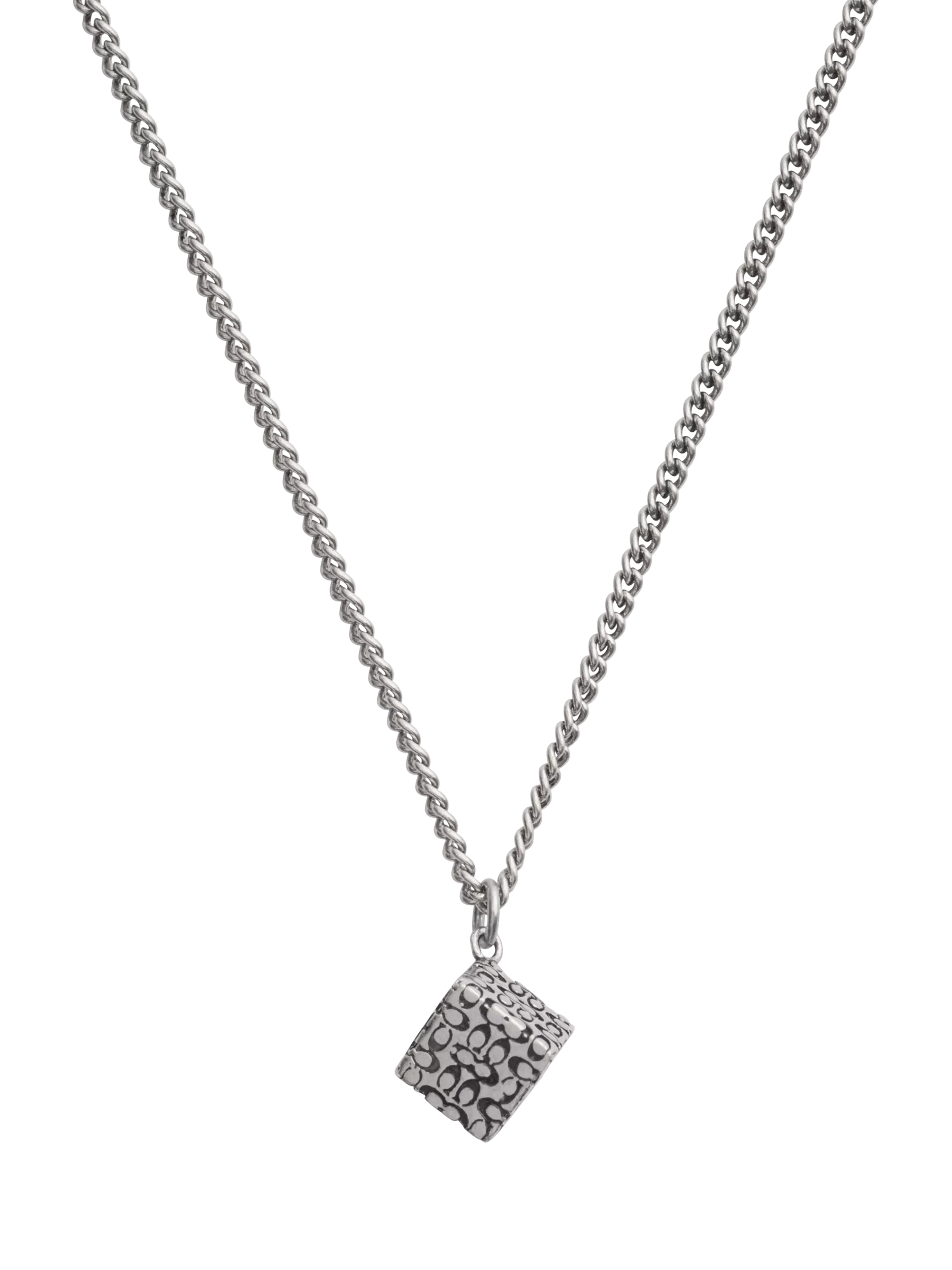 Great for wearing on its own or layered with other necklaces, this curb chain necklace from Coach features a cube pendant adorned with a quilted signature sculpted C motif. With a reliable lobster claw fastening, it'll stay put as you go about your day. Includes a signature Coach jewellery pouch.