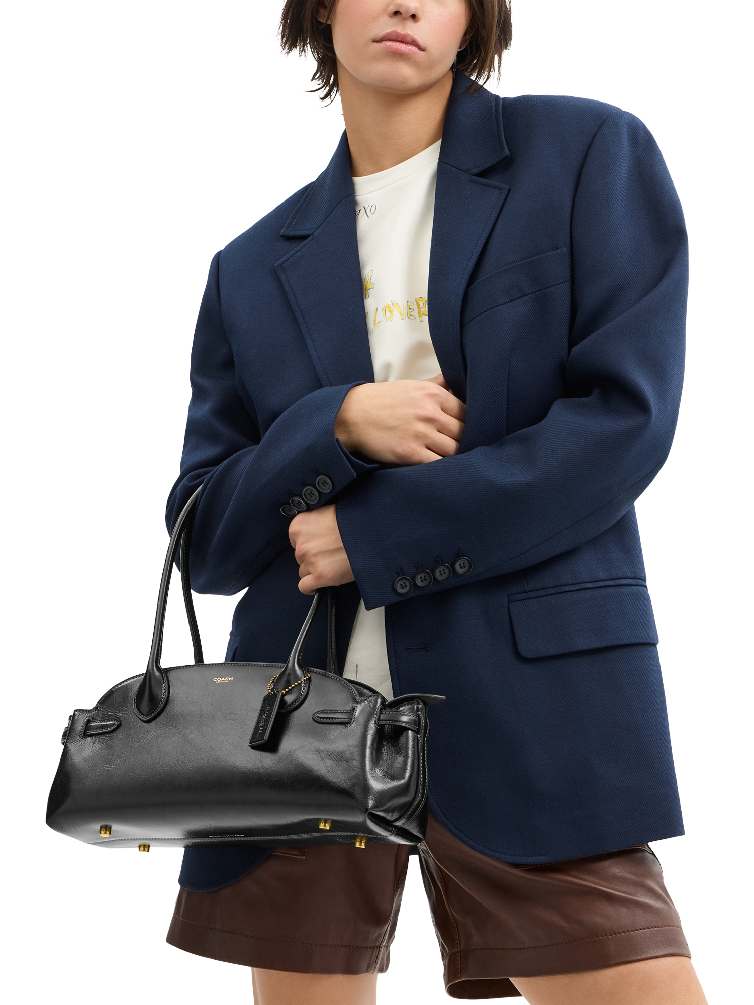 A vintage-inspired silhouette, Coach's Empire bag is designed with a New York state of mind—and attitude. Crafted of buttery soft leather, the roomy 34 features a secure interior centre-zip compartment and is finished with interior buckles to expand the side gussets when you need a little more room.