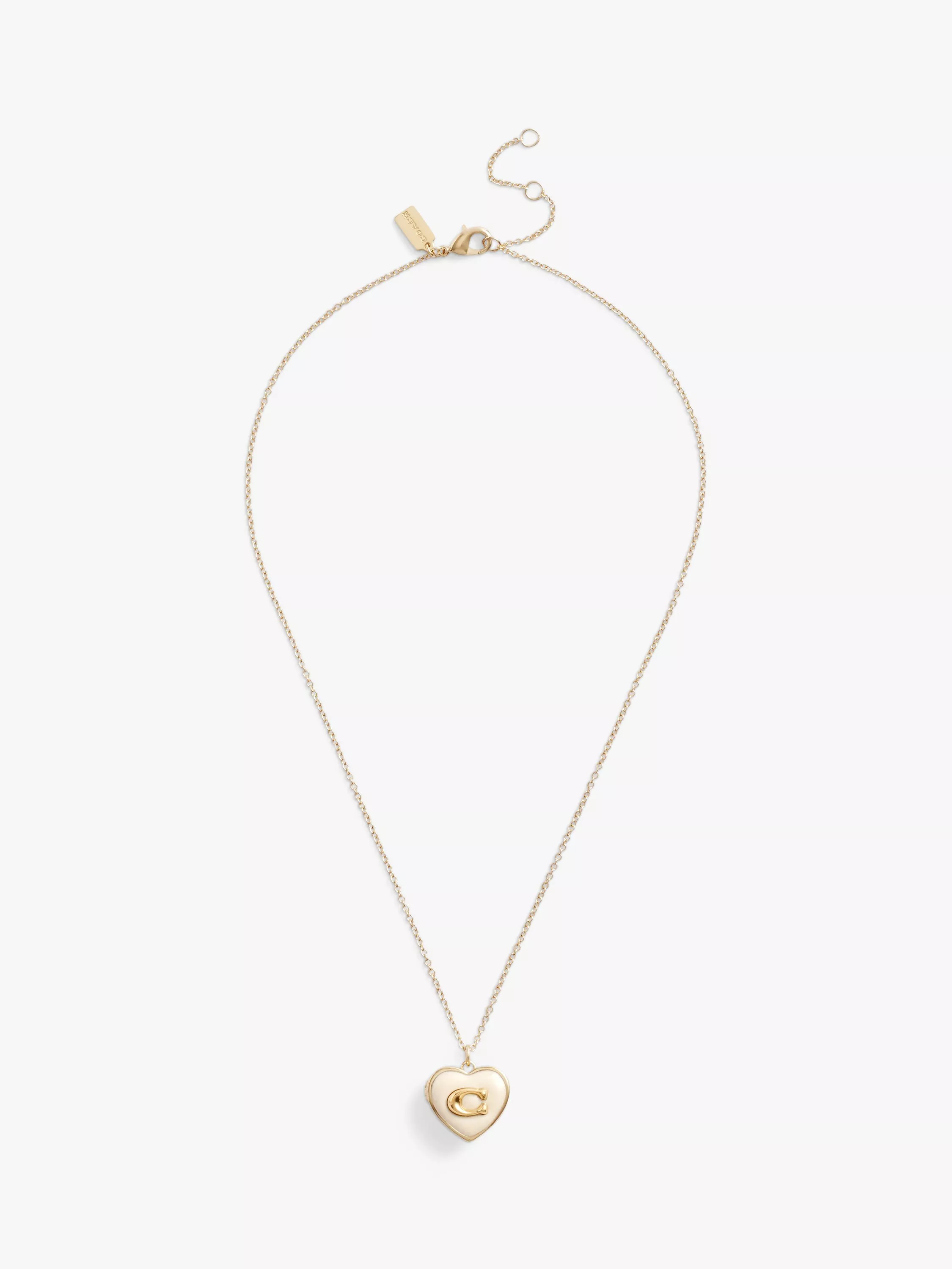 Elegant, heartfelt and meaningful no matter what you wear it with, this locket necklace from Coach boasts an enamel heart adorned with a sculpted C motif.