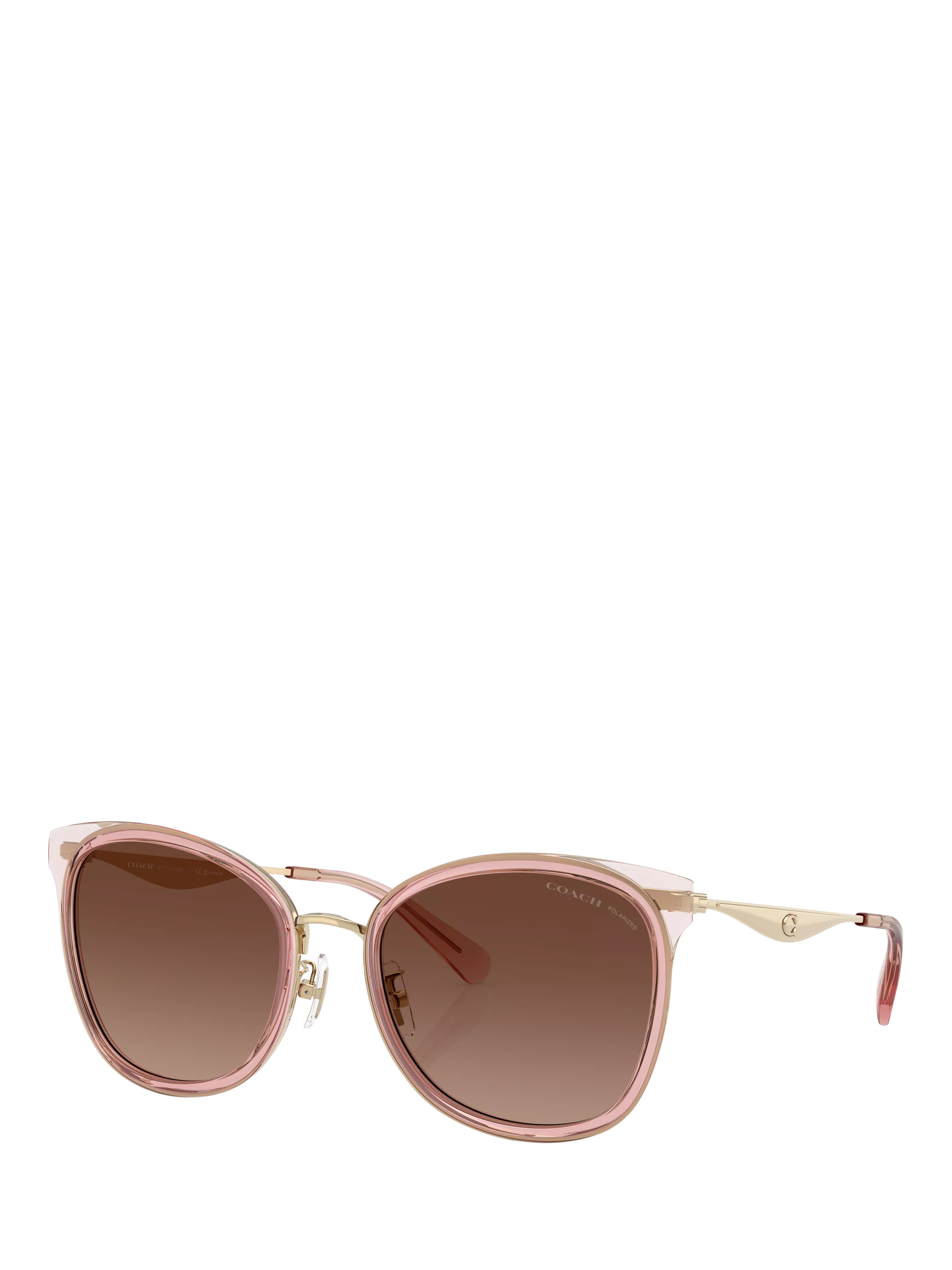 CoachHC7170 Women's Polarised Oval Sunglasses, Pink/Brown Gradient