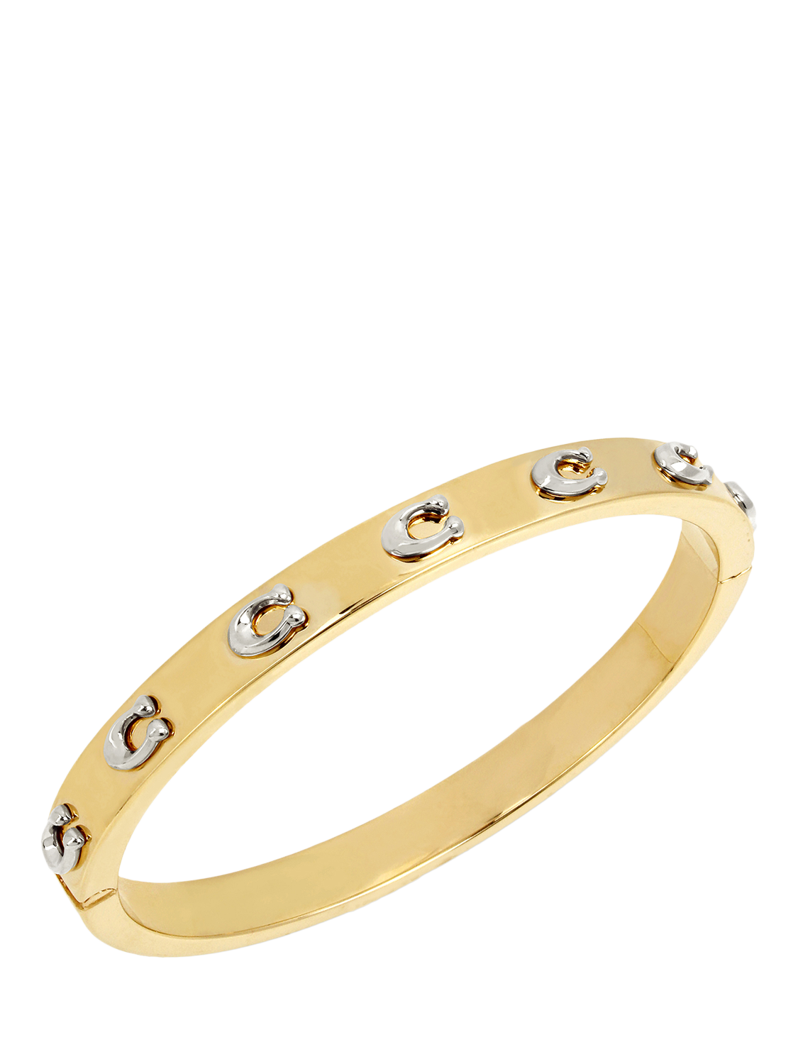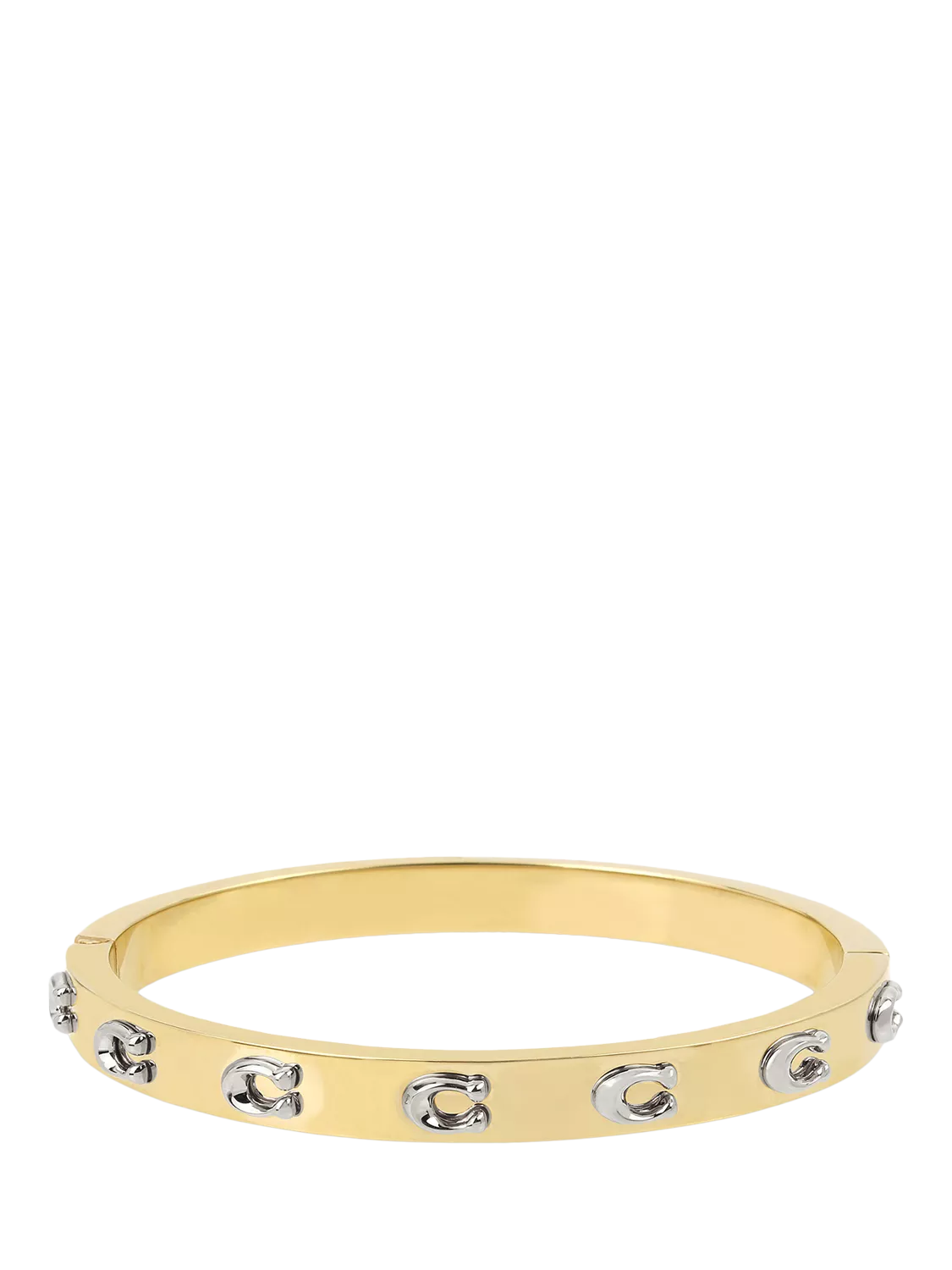 Everyday hinged bangle bracelet, detailed with contrasting signature sculpted C motifs across the front. Fastened with an easy hinge closure. Includes a COACH pouch.