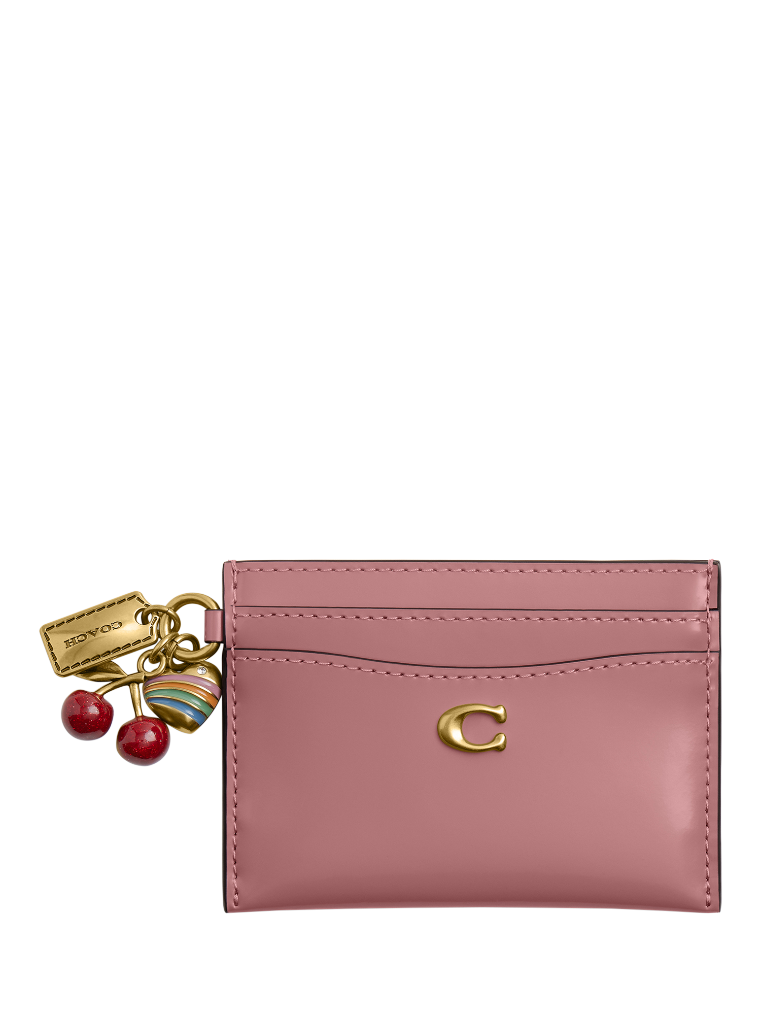 Crafted from glossy, polished spazzolato leather, this case has four card slots and a centre compartment to hold more cards or cash. Detailed with the brand's Signature hardware and a collection of playful Coach charms, slip it in your pocket or stash inside your bag.
