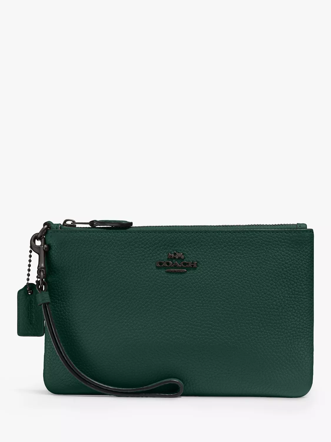 Perfectly sized for cash, cards and other small essentials, this day-to-night design in polished pebble leather from Coach can be carried on the wrist or clipped inside of a larger bag.