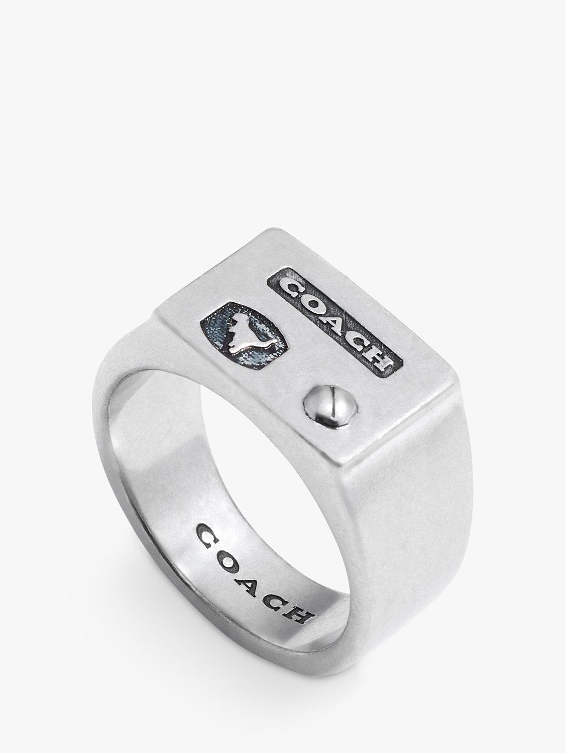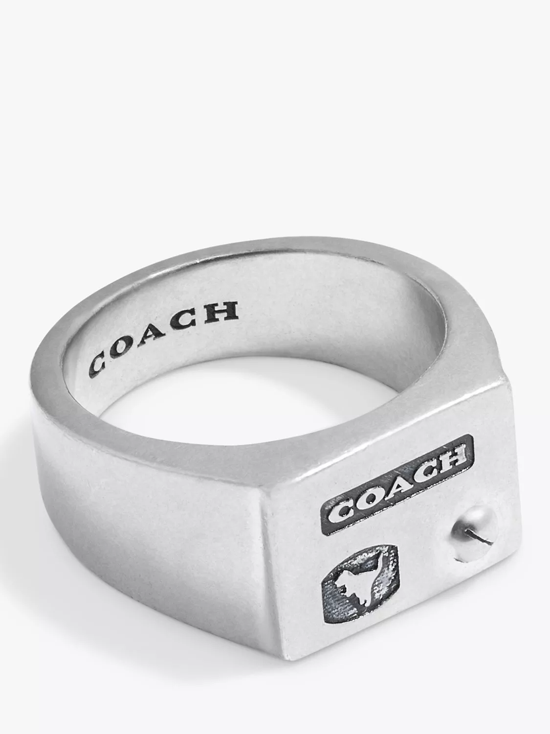 This minimal signet ring features mixed signature Coach logos and a Rexy dino motif creating an eclectic look that's perfect for every day.