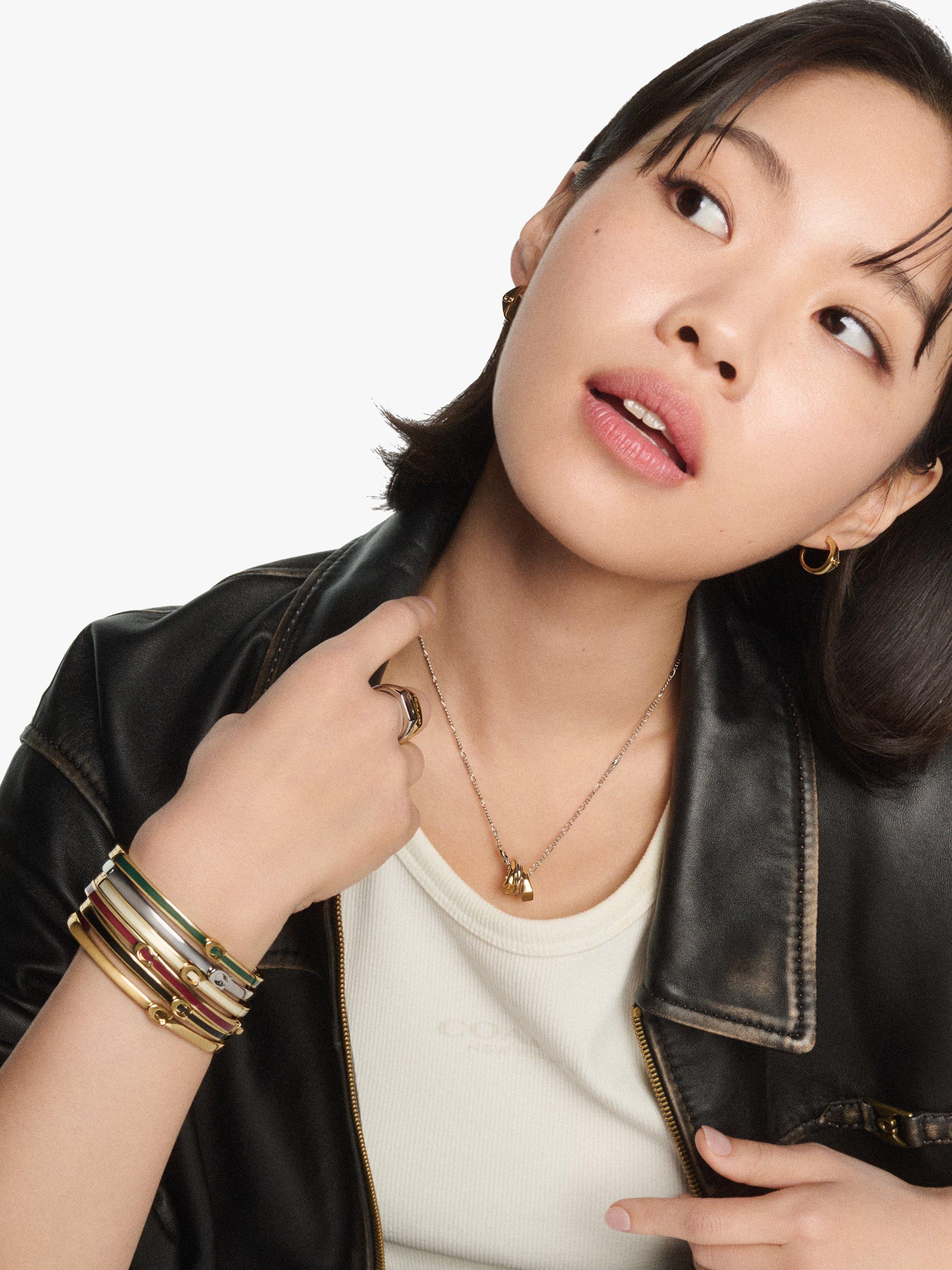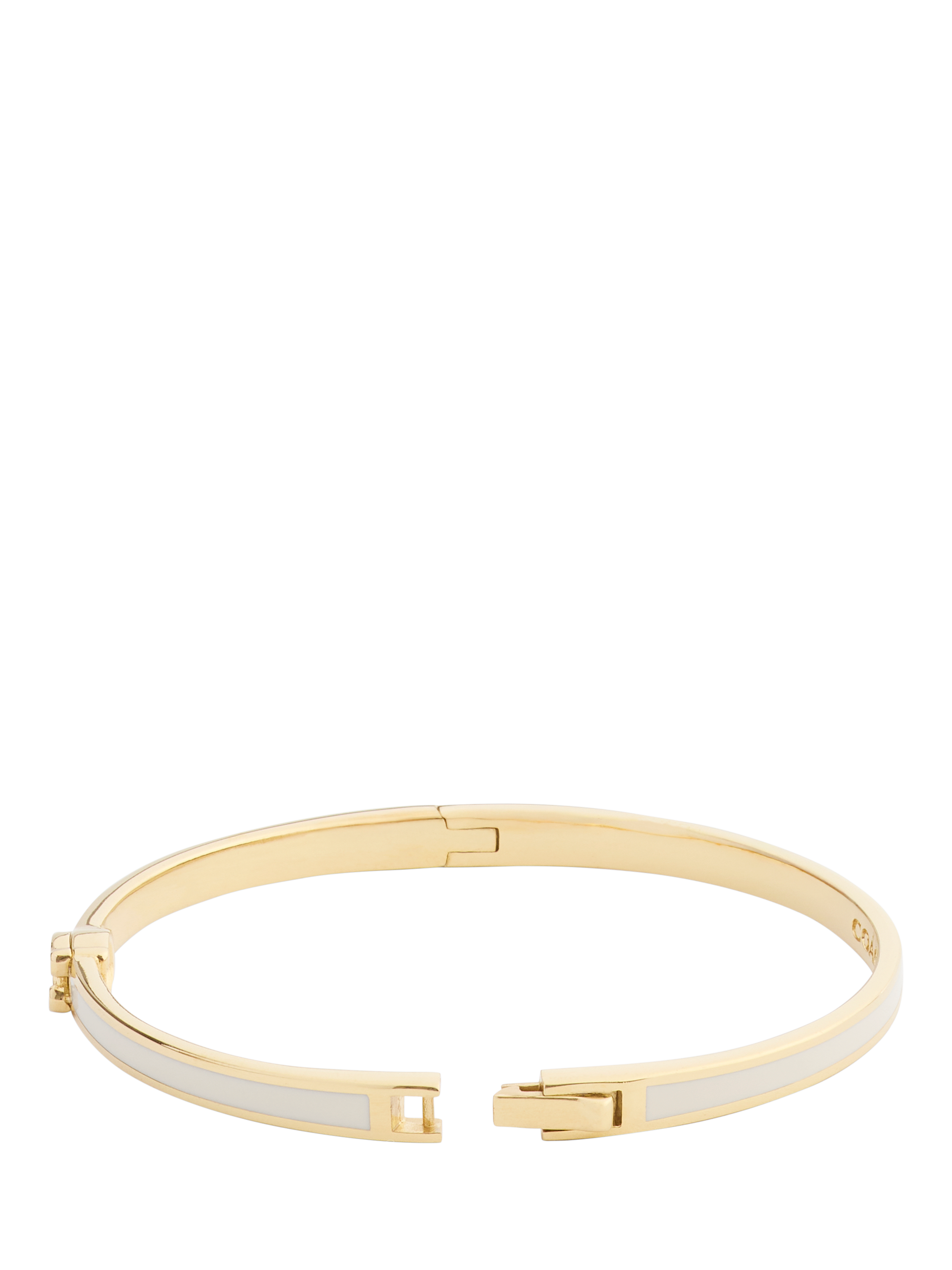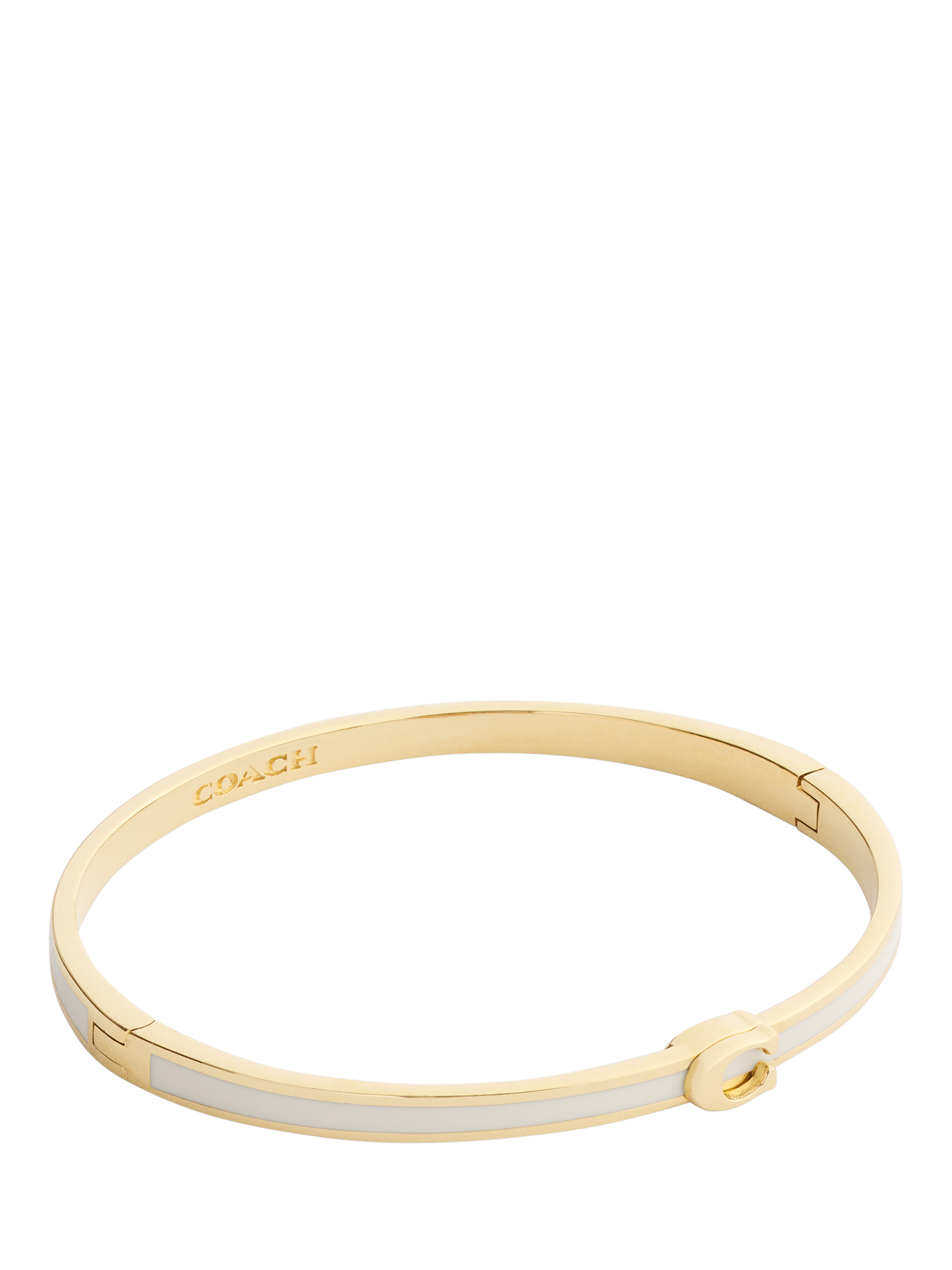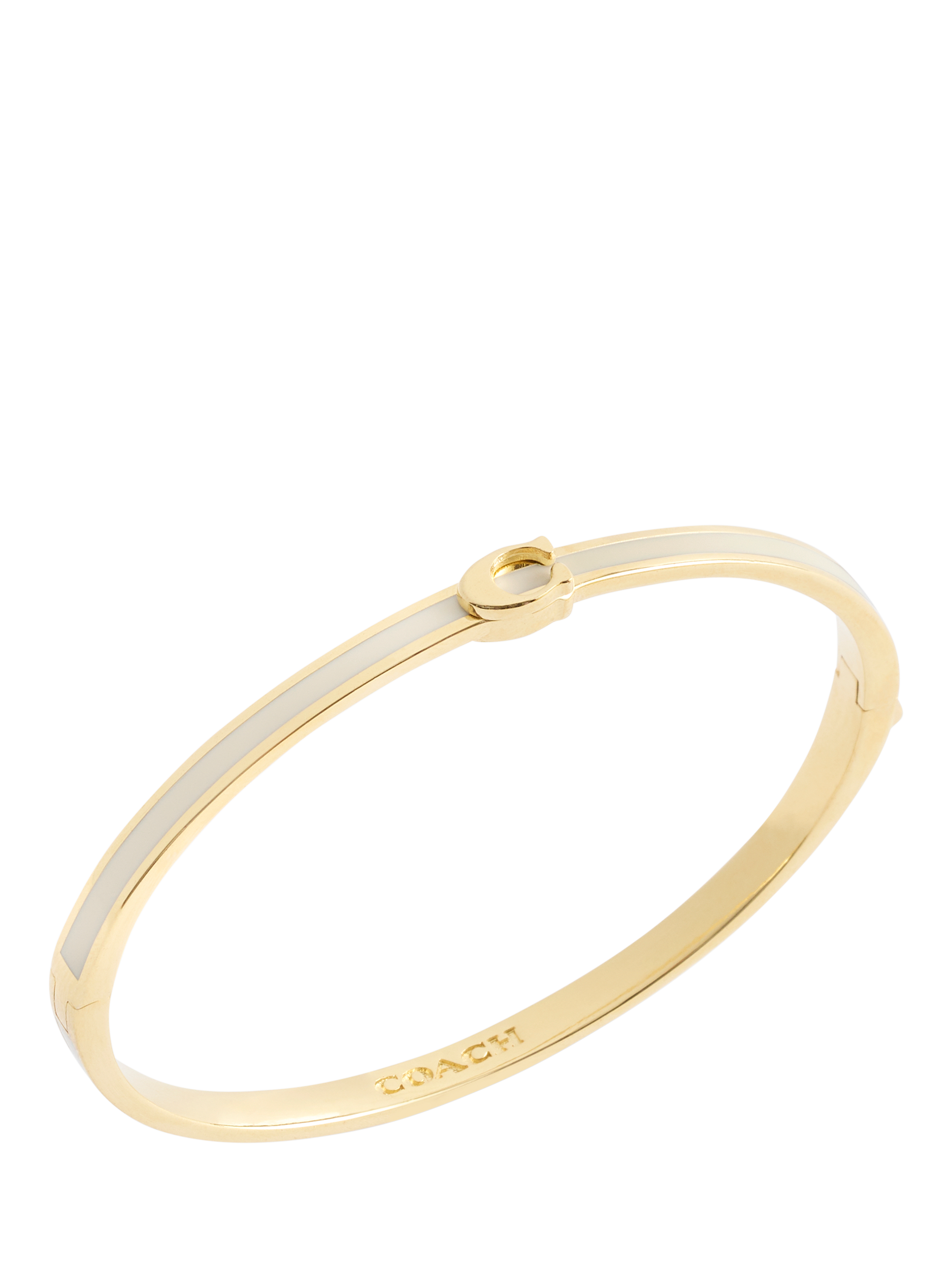 Minimal hinged bangle bracelet in neutral enamel, featuring signature sculpted C hardware at front perfect for everyday. Comes packaged in a signature COACH gift box. This piece has an easy hinge closure.