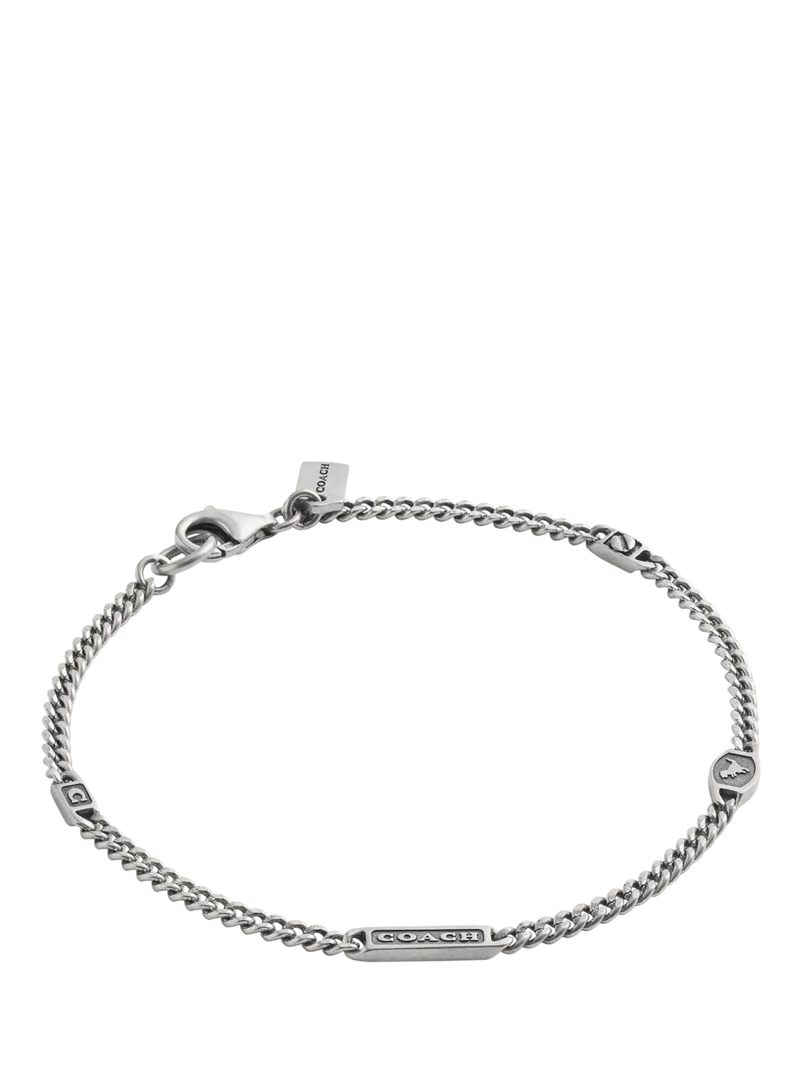 This sturdy curb chain bracelet from Coach features signature motifs including a logo, Rexy dino and sculpted C perfect for everyday. Secured with a lobster clasp, it'll ensure a secure fit as you go about your day. Includes a signature Coach jewellery pouch.