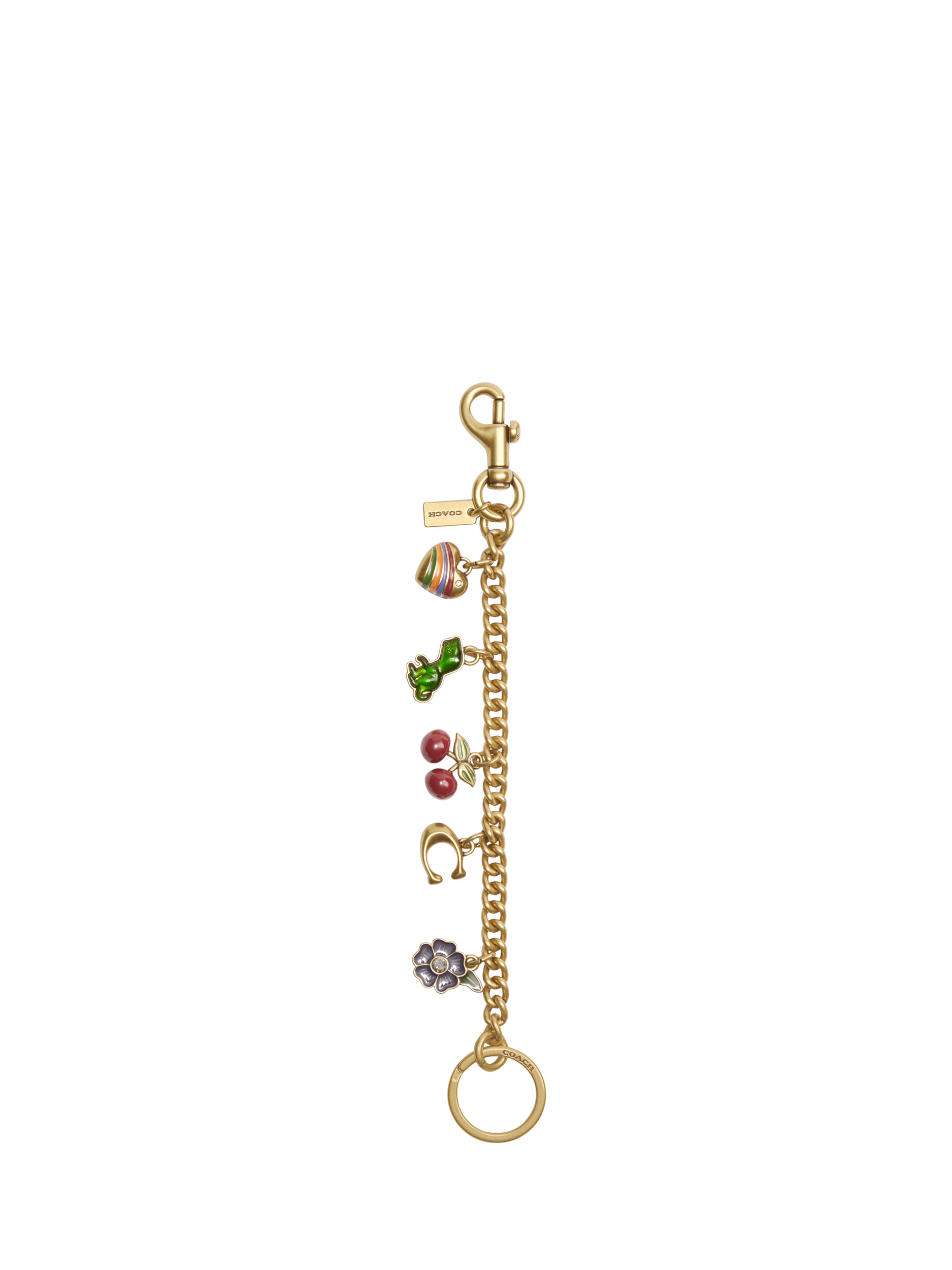 Coach icons playfully swing from this heirloom jewellery-inspired bag charm. It adds a playful style to a favourite bag or set of keys. A branded hangtag adds an iconic Coach touch.