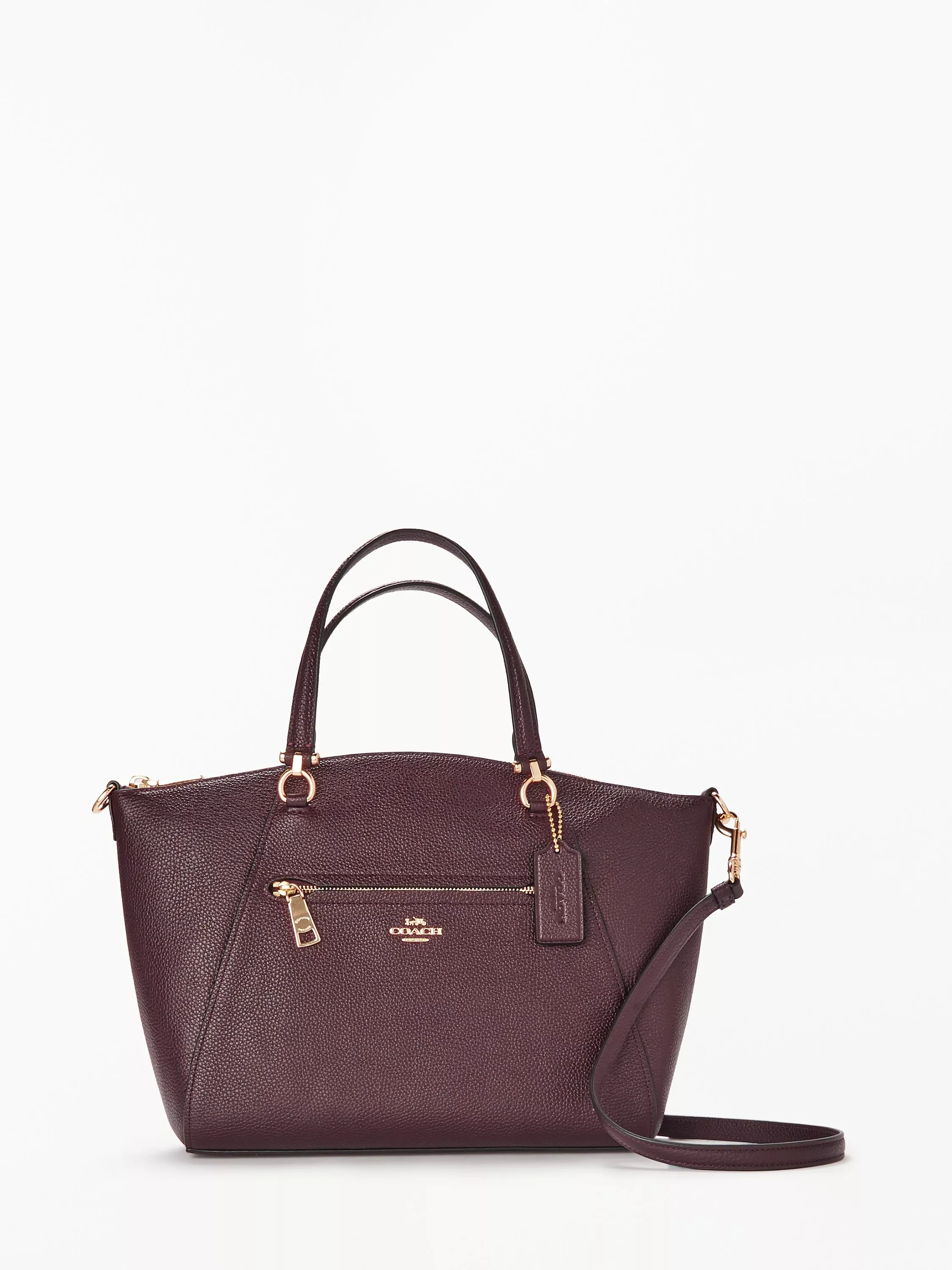 Crafted in soft, polished pebbled leather, this simple design makes an elegant satchel bag. Prairie by Coach features refined polished hardware that complements the minimalist design. The slender cross-body strap detaches for multiple wearing options.