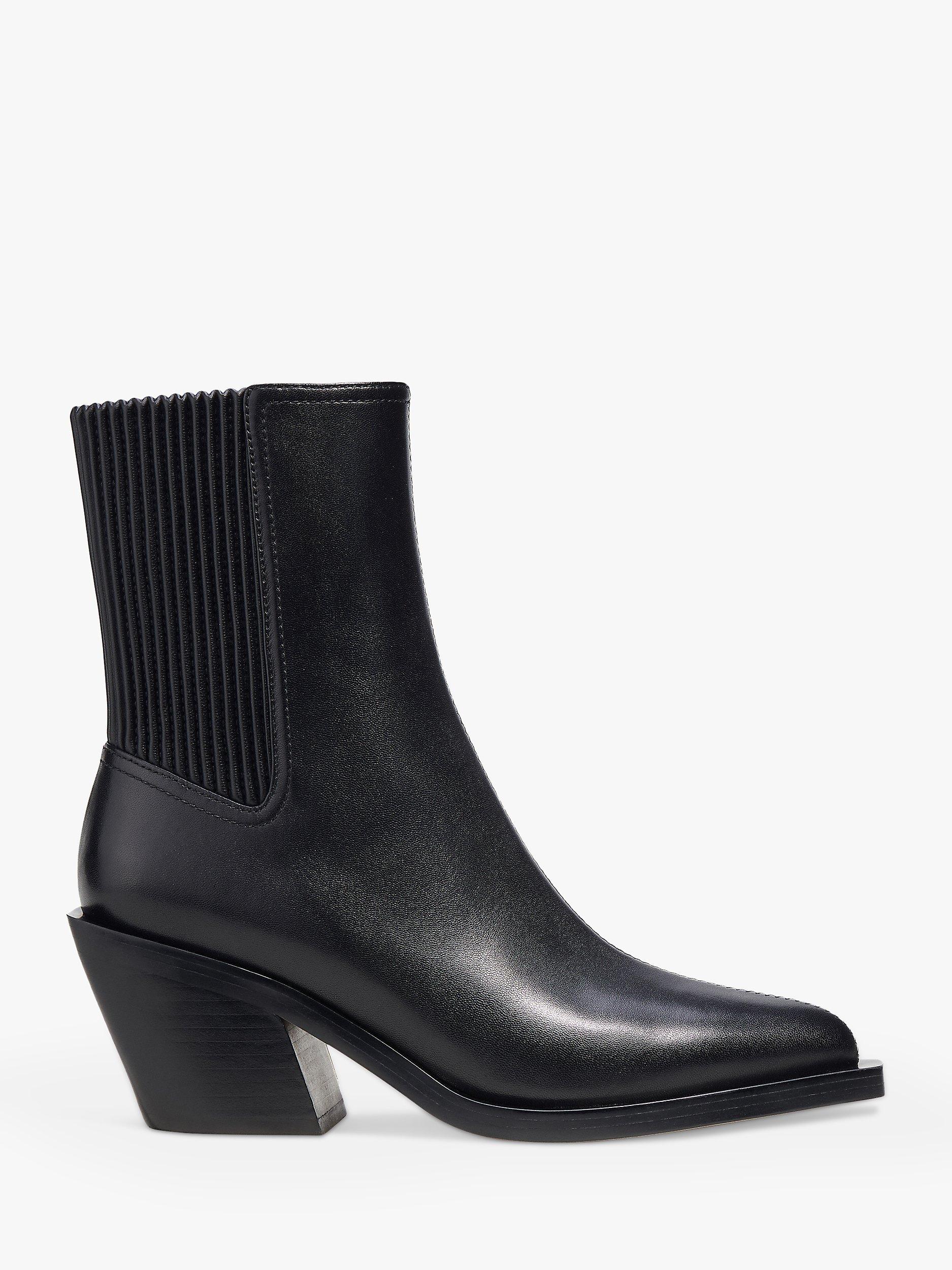Set on a block heel in a slip-on fit with an elasticated ribbed panel on back, they are finished with a pointed toe that elongates the profile.
