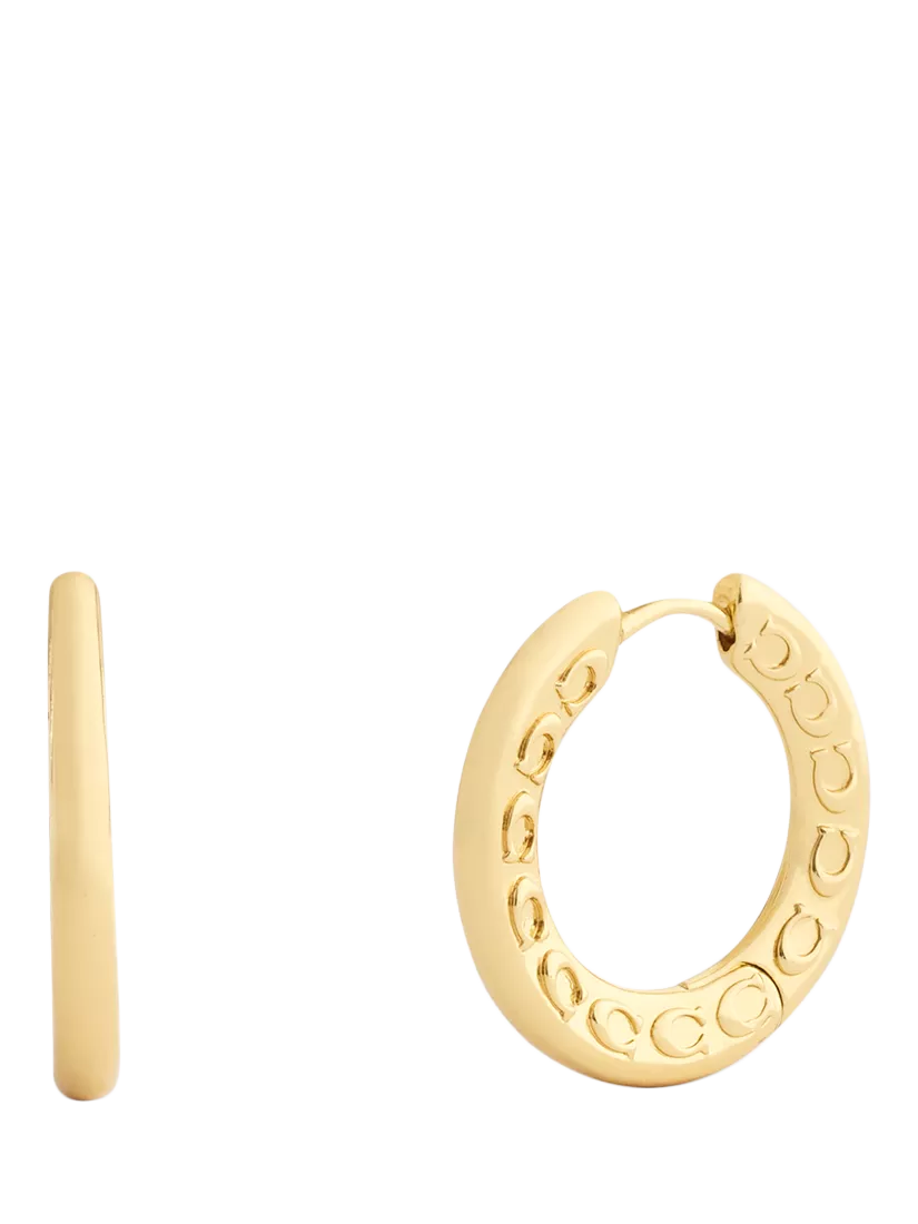 Minimal hoop earrings from Coach, featuring signature sculpted C motif and hypoallergenic titanium posts that are perfect for everyday. Fastened with a hinge closure, and suitable for pierced ears only. Made from brass and titanium.