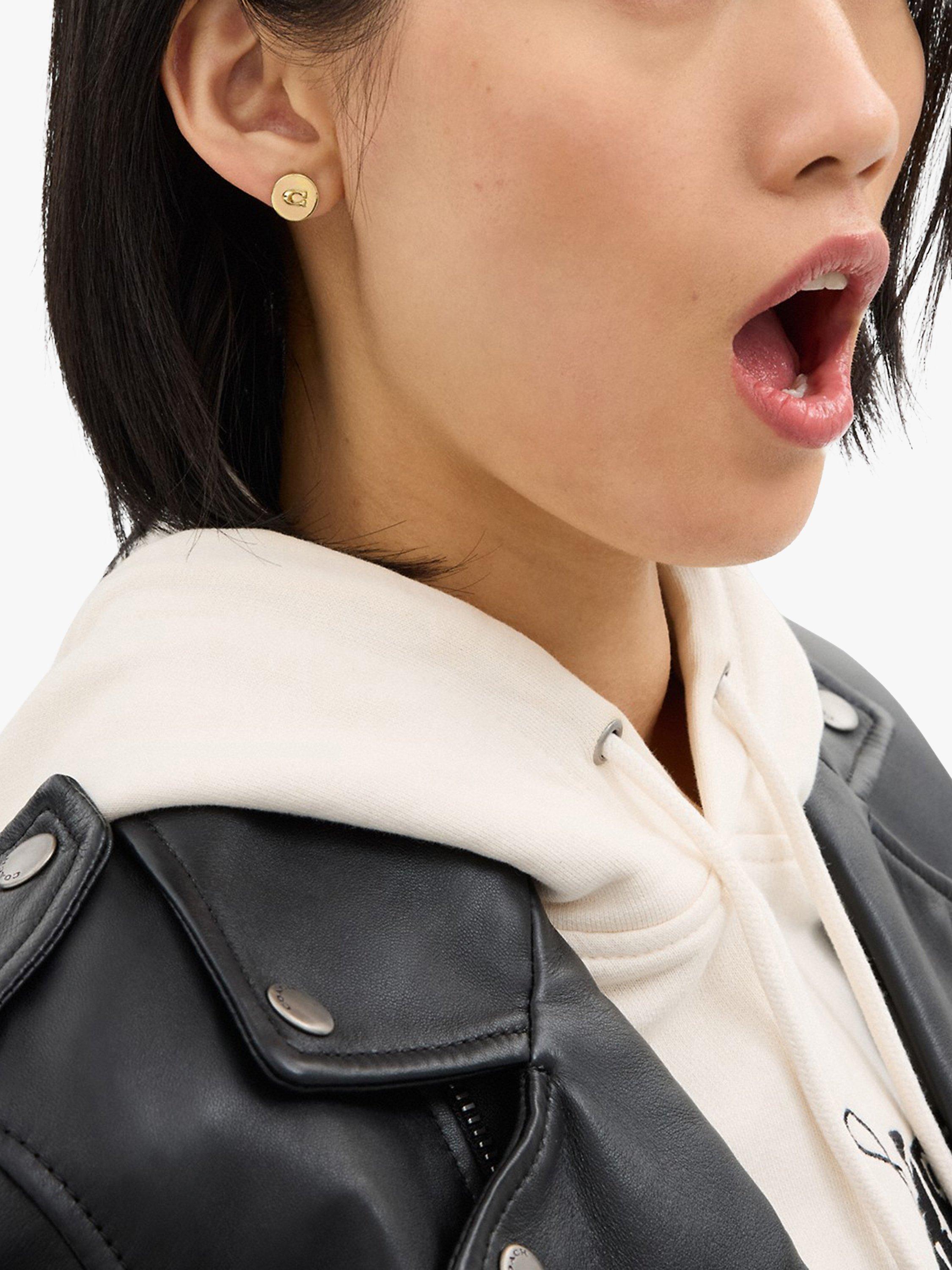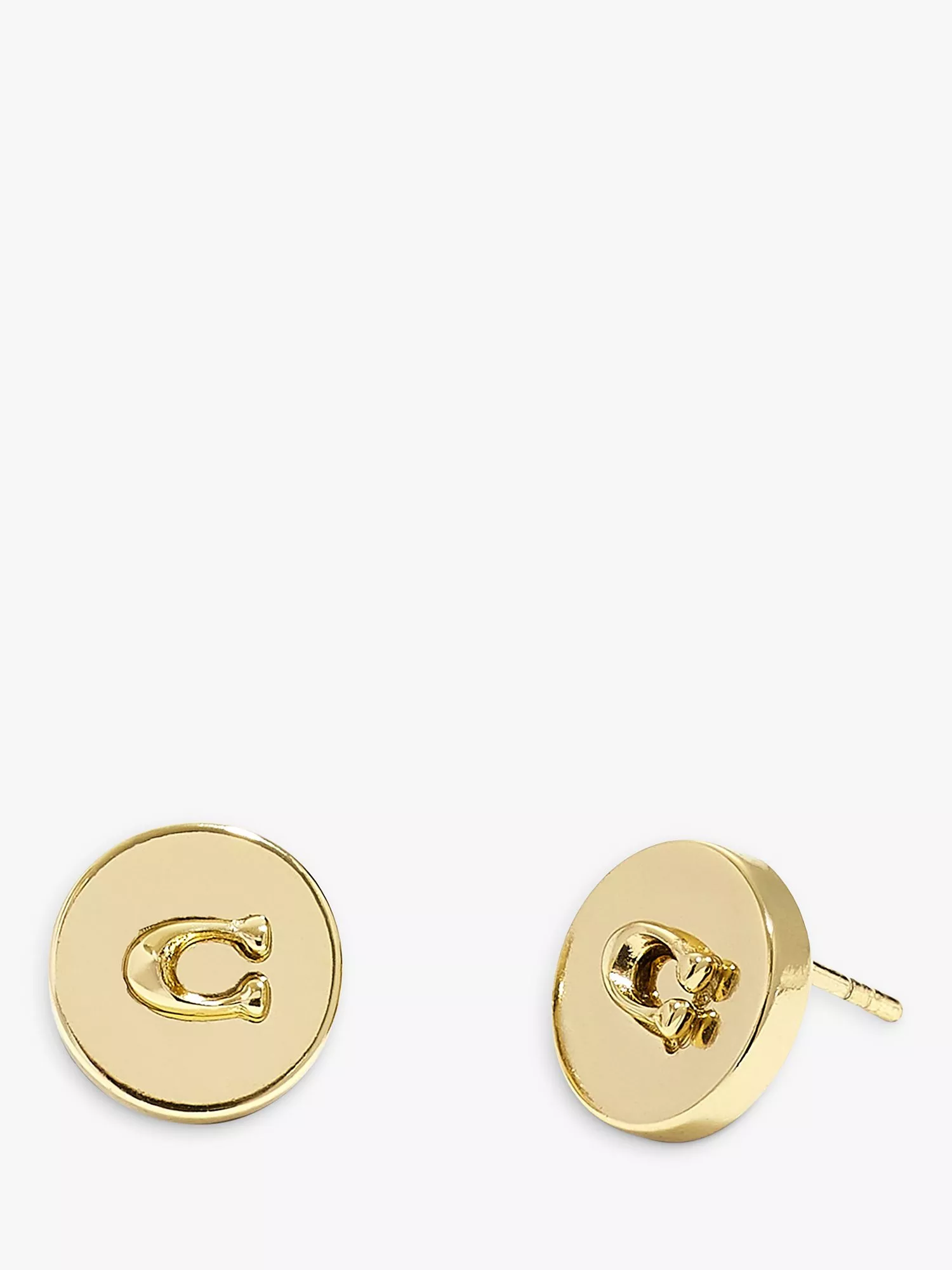 Everyday round disc stud earrings adorned with signature sculpted C motif. Earrings have a post back closure that are for pierced ears only.