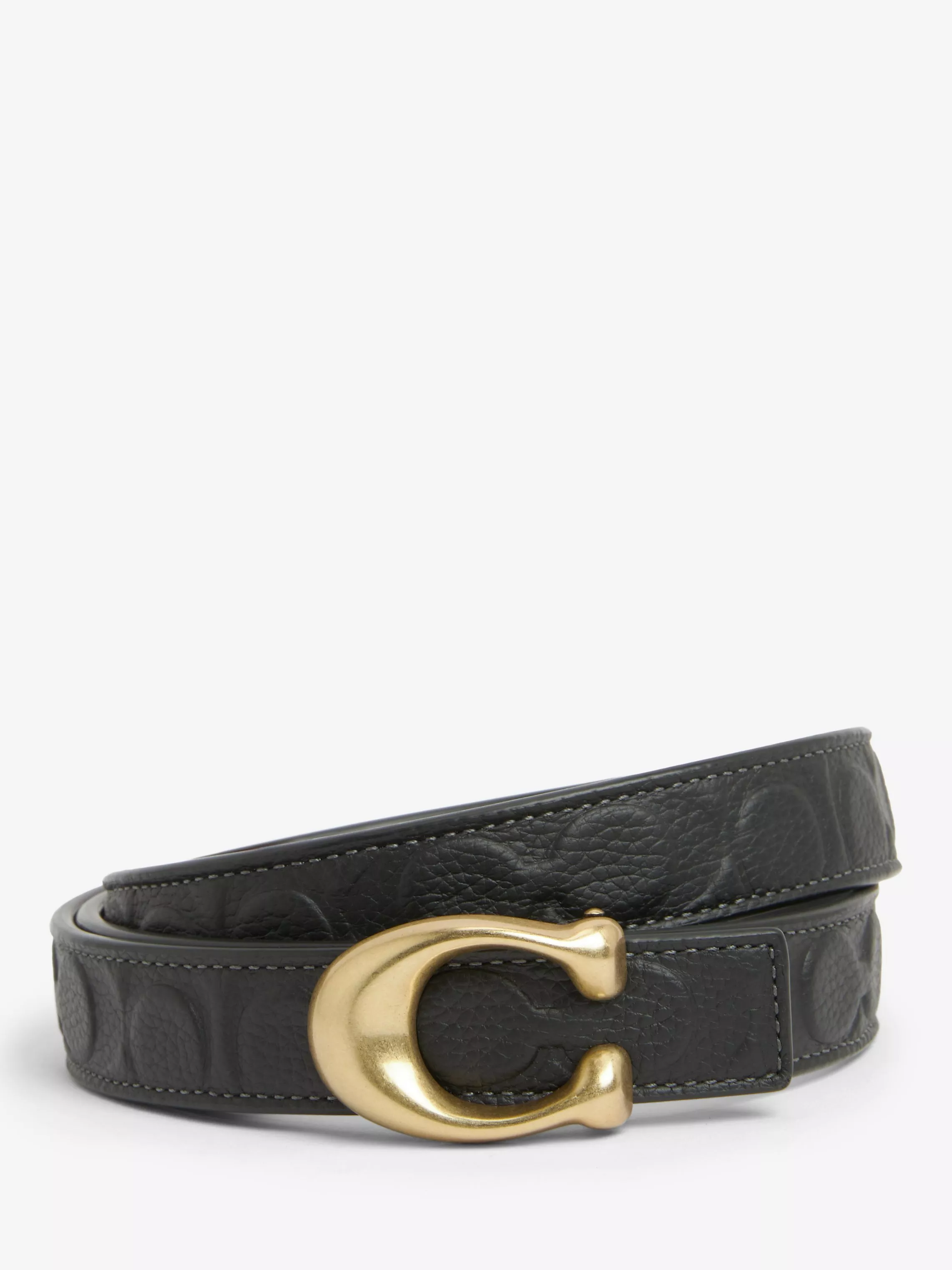 Crafted of smooth leather, this reversible skinny belt gives you two looks in one. It's finished with Coach's Signature buckle for heritage style.