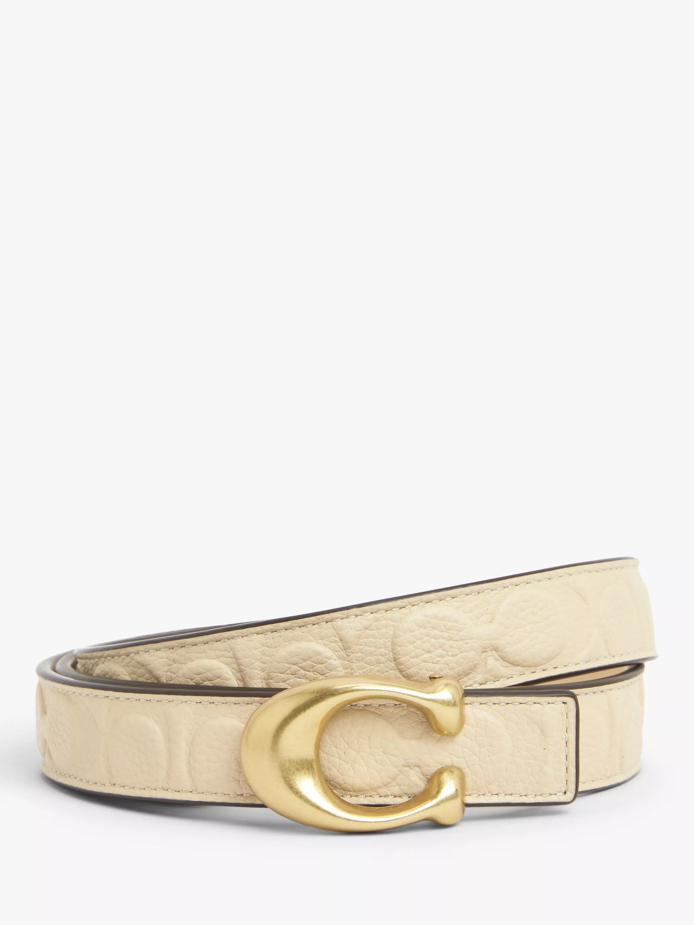 Crafted of smooth leather, this reversible skinny belt gives you two looks in one. It's finished with Coach's Signature buckle for heritage style.