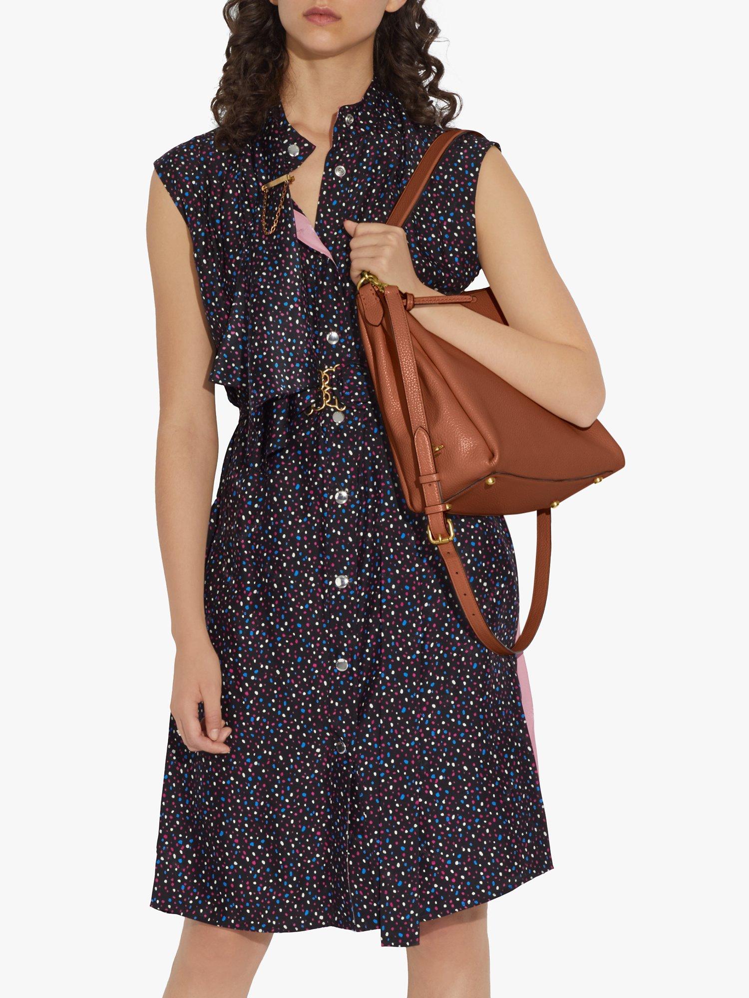 Crafted of scratch-resistant pebble leather, it's finished with a comfortable, wide shoulder strap and a detachable crossbody strap for versatile wear.