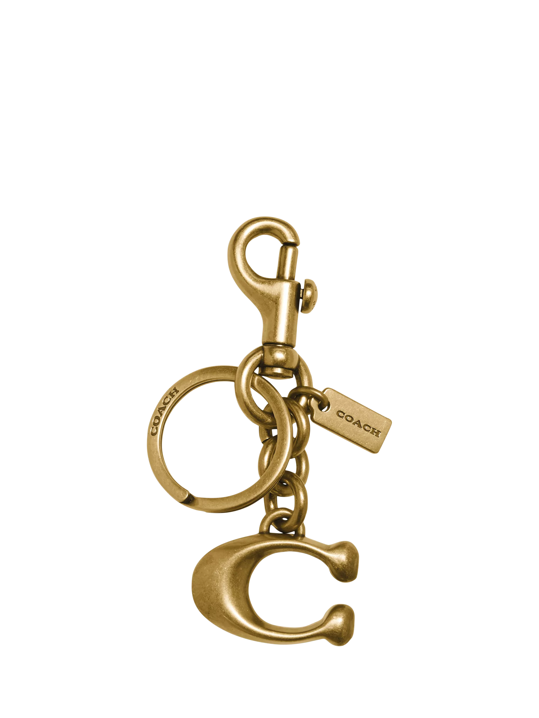 Add some heritage style to a favourite bag or set of keys with the Coach Signature bag charm. The polished metal style is finished with a diminutive branded hangtag for an iconic Coach touch.