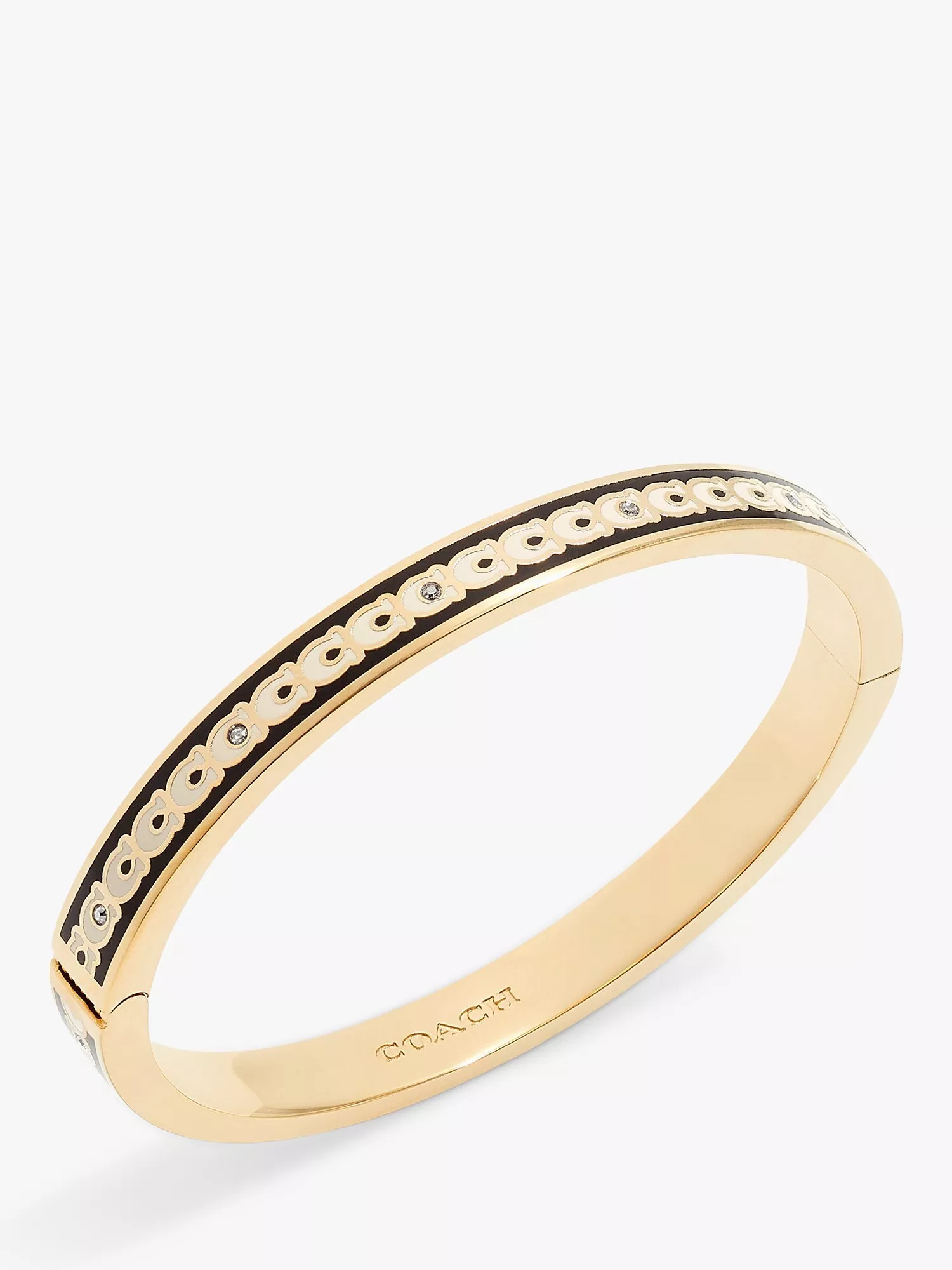As versatile as it is stylish, this smooth polished bangle from Coach is detailed with signature branding for a heritage touch..