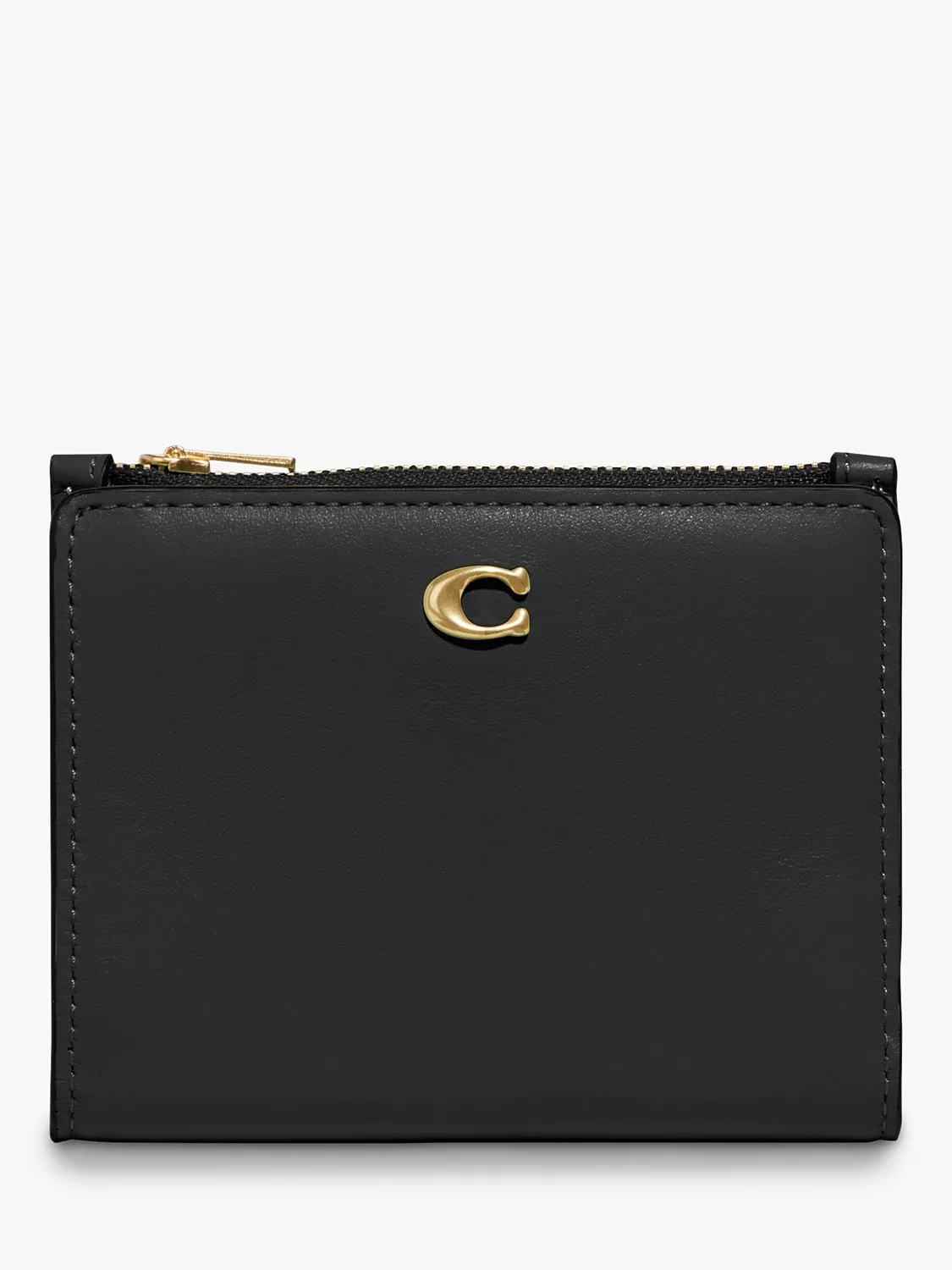 This petite leather bifold wallet has a convenient exterior pocket for easy access to coins and small accessories. Secured by a snap closure, it opens to reveal six card slots and a full-length bill compartment for optimal organisation.