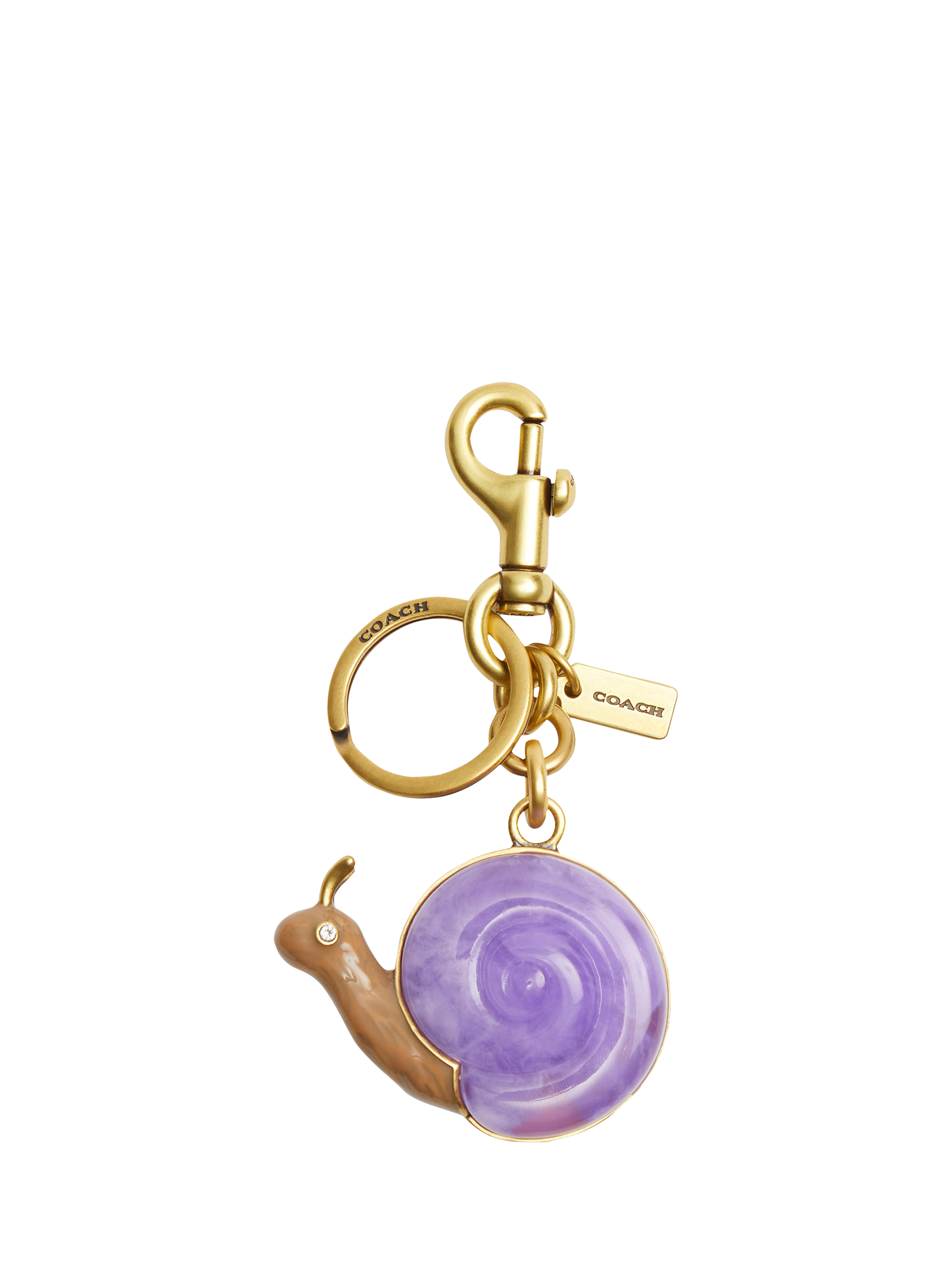 A playful style inspired by nature, this stately snail charm adds a whimsical touch to a bag or set of keys. Detailed with sparkling crystal eyes, the smooth resin style is finished with a split key ring and dogleash clip.