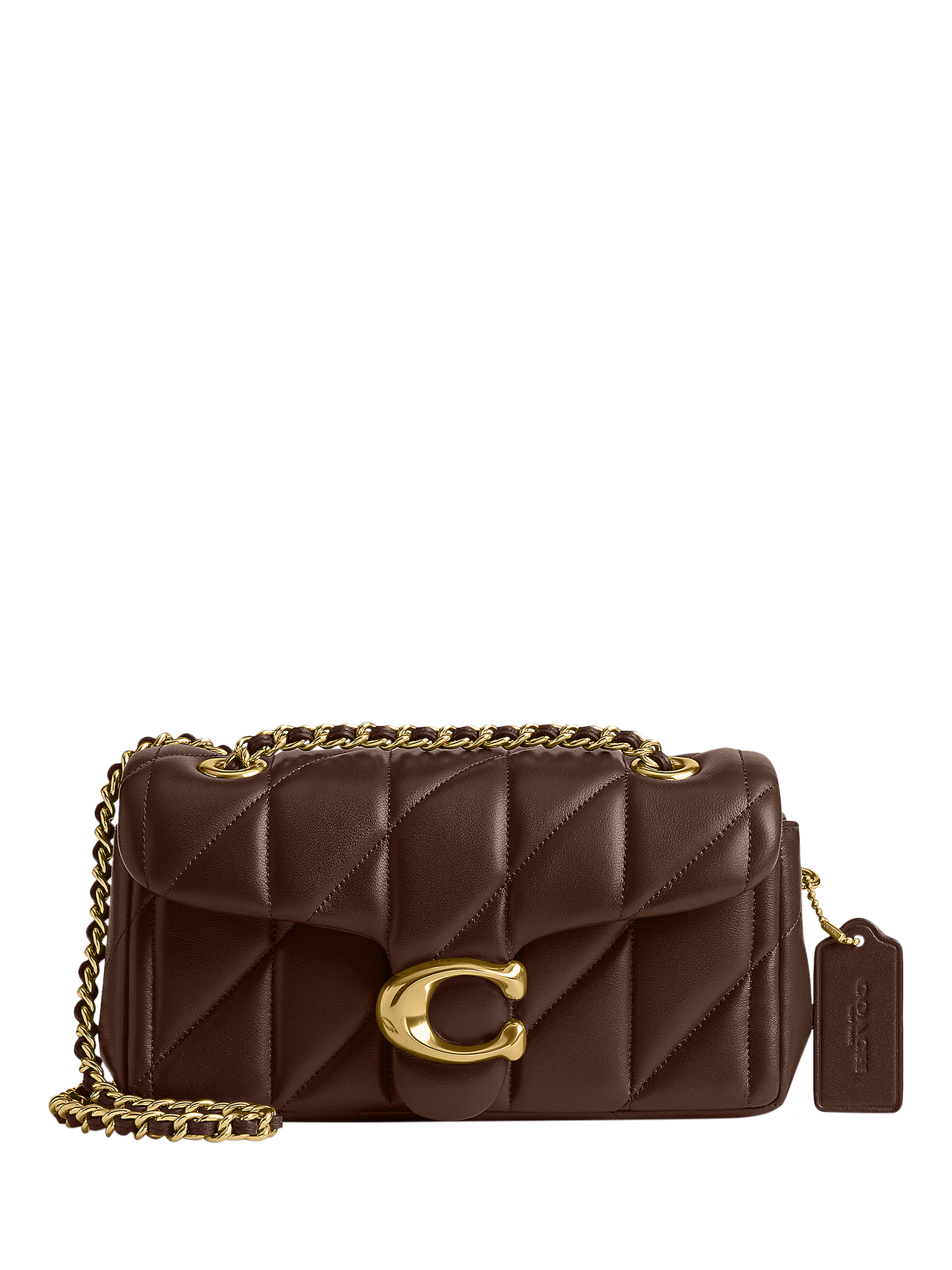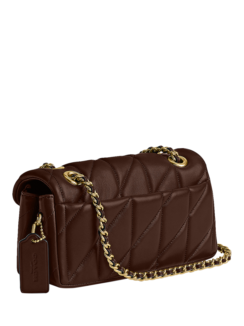 Modern take on an archival 1970s Coach design, this structured Tabby shoulder bag is crafted of quilted plush, ultra-soft Nappa leather. Slightly smaller than the 26, the petite 20 features a long leather chain strap to wear crossbody or double up for a shorter, dressier look. It's finished with Signature hardware for an iconic touch.