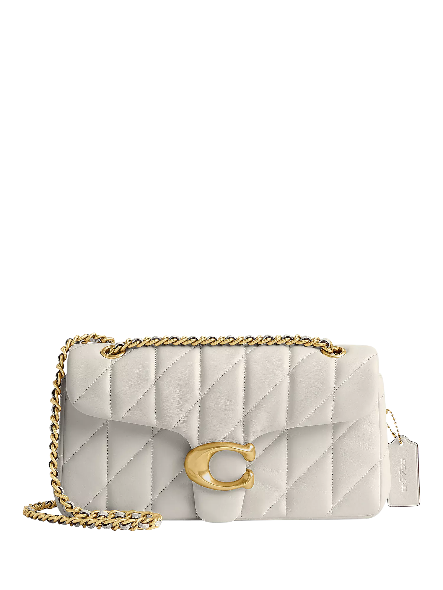 A modern take on an archival 1970s Coach design, this structured Tabby shoulder bag is crafted of quilted plush, ultra-soft Nappa leather.