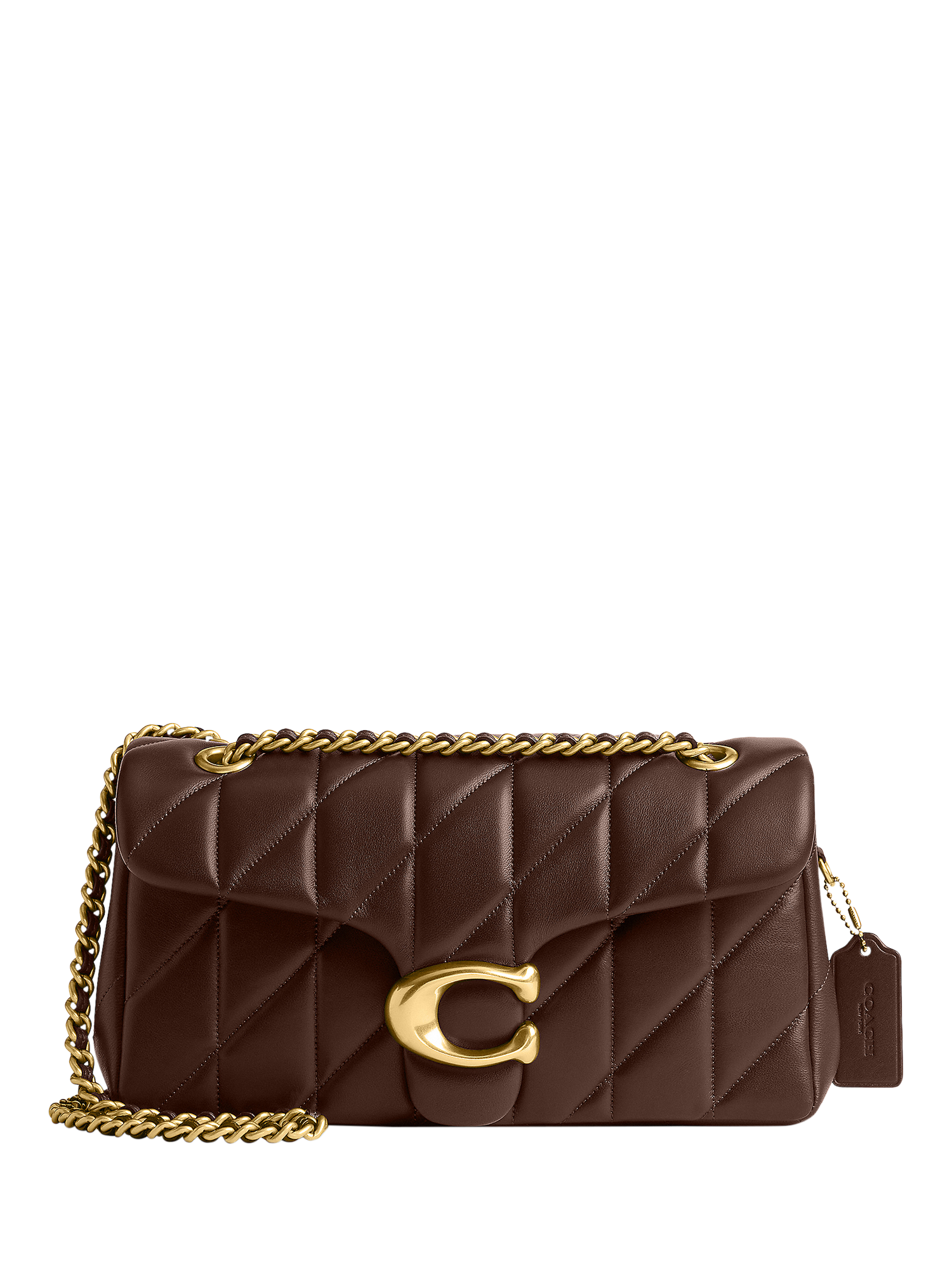 A modern take on an archival 1970s Coach design, this structured Tabby shoulder bag is crafted of quilted plush, ultra-soft Nappa leather.