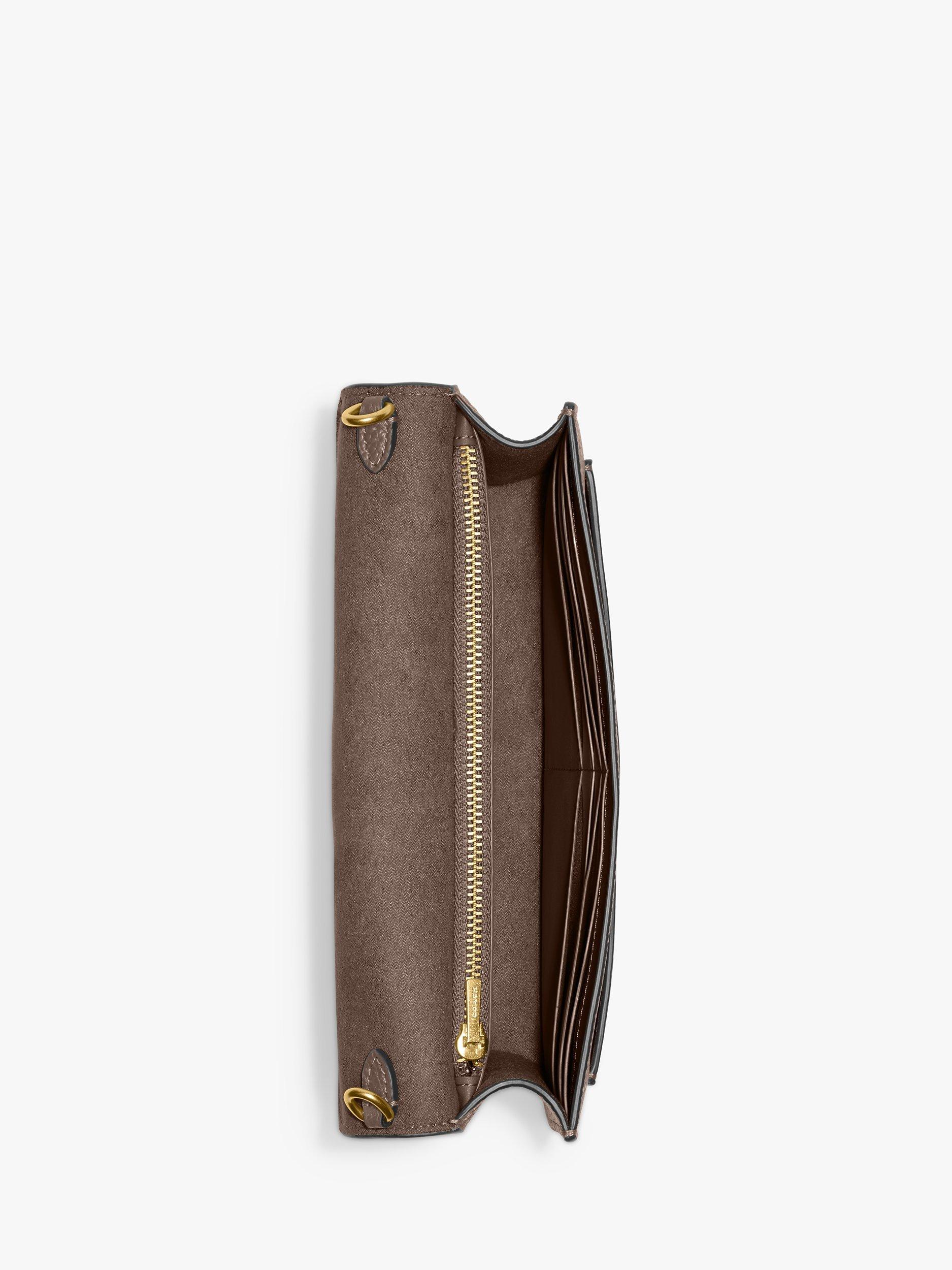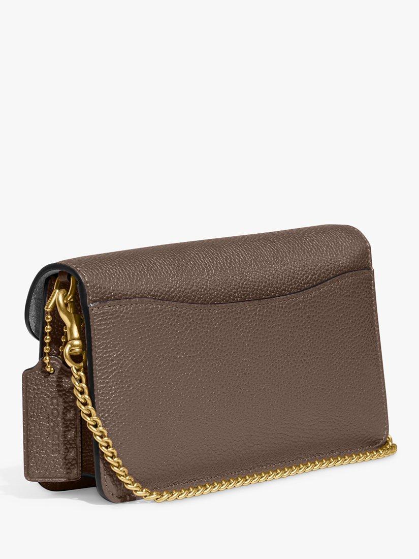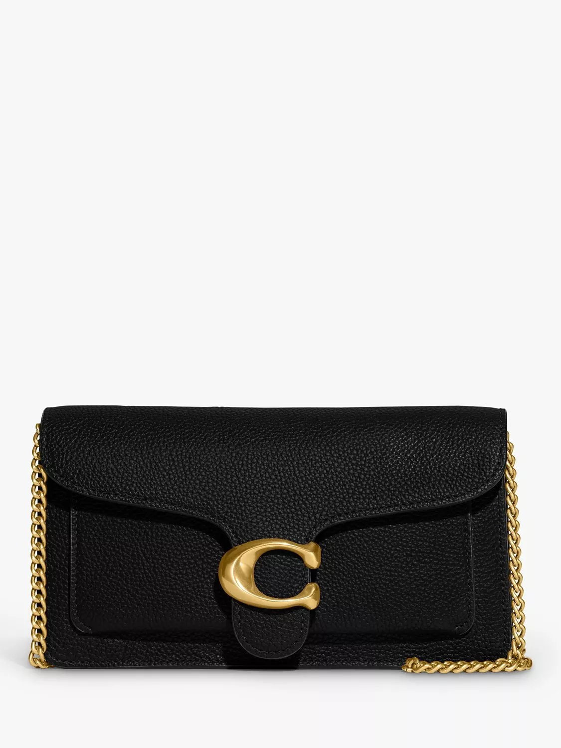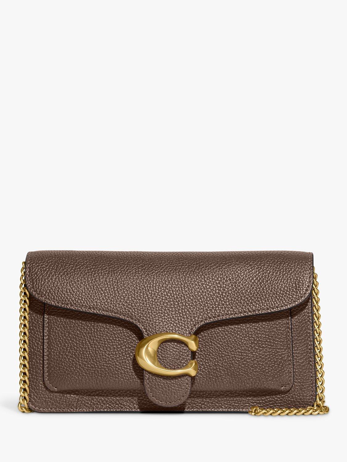 A modern take on an archival 1970s Coach design, the structured Tabby clutch is crafted of polished pebble leather. Finished with signature hardware, this organised, three-compartment design has a secure interior zipped compartment and an exterior slip pocket for easy access to essentials.