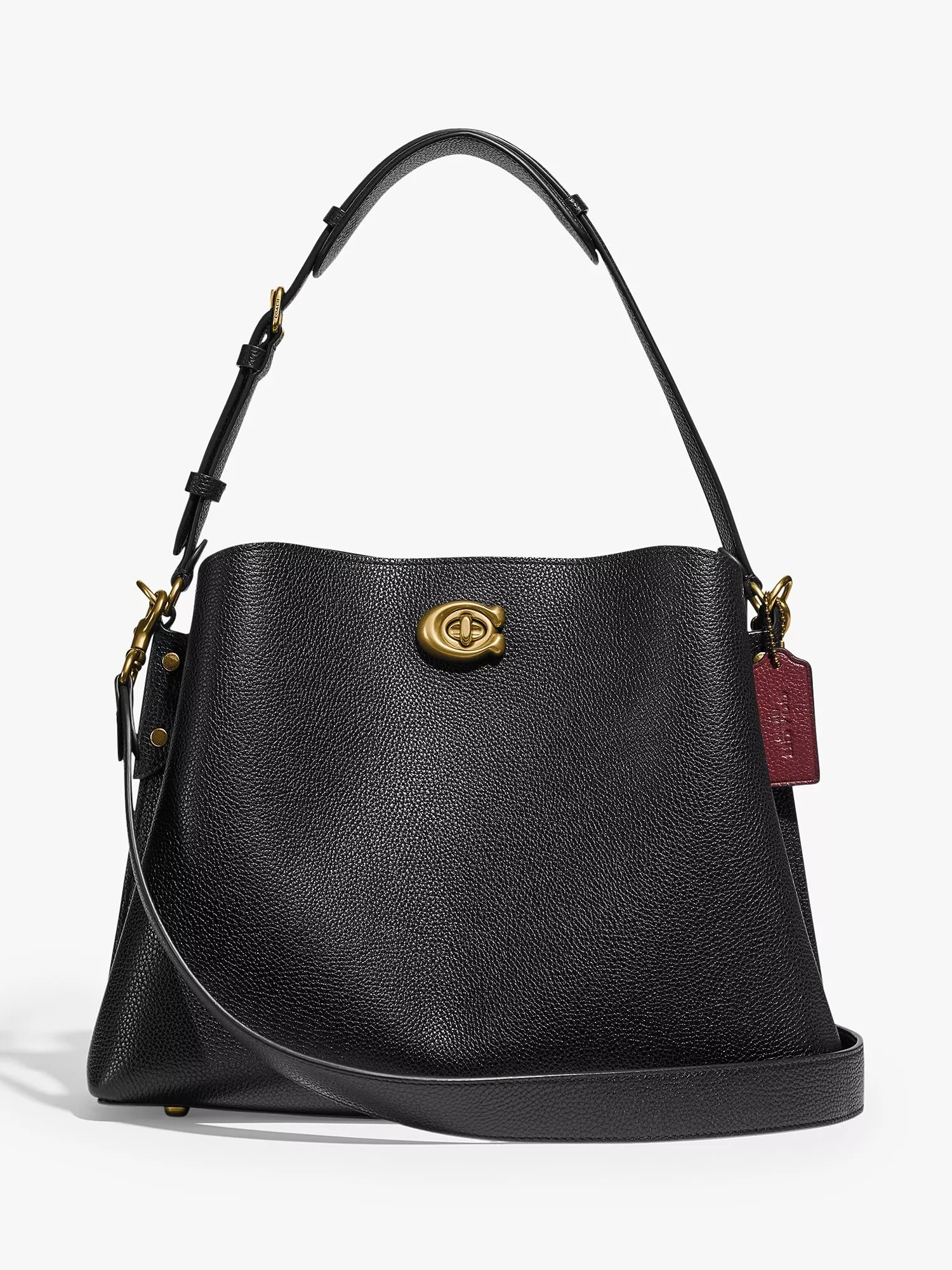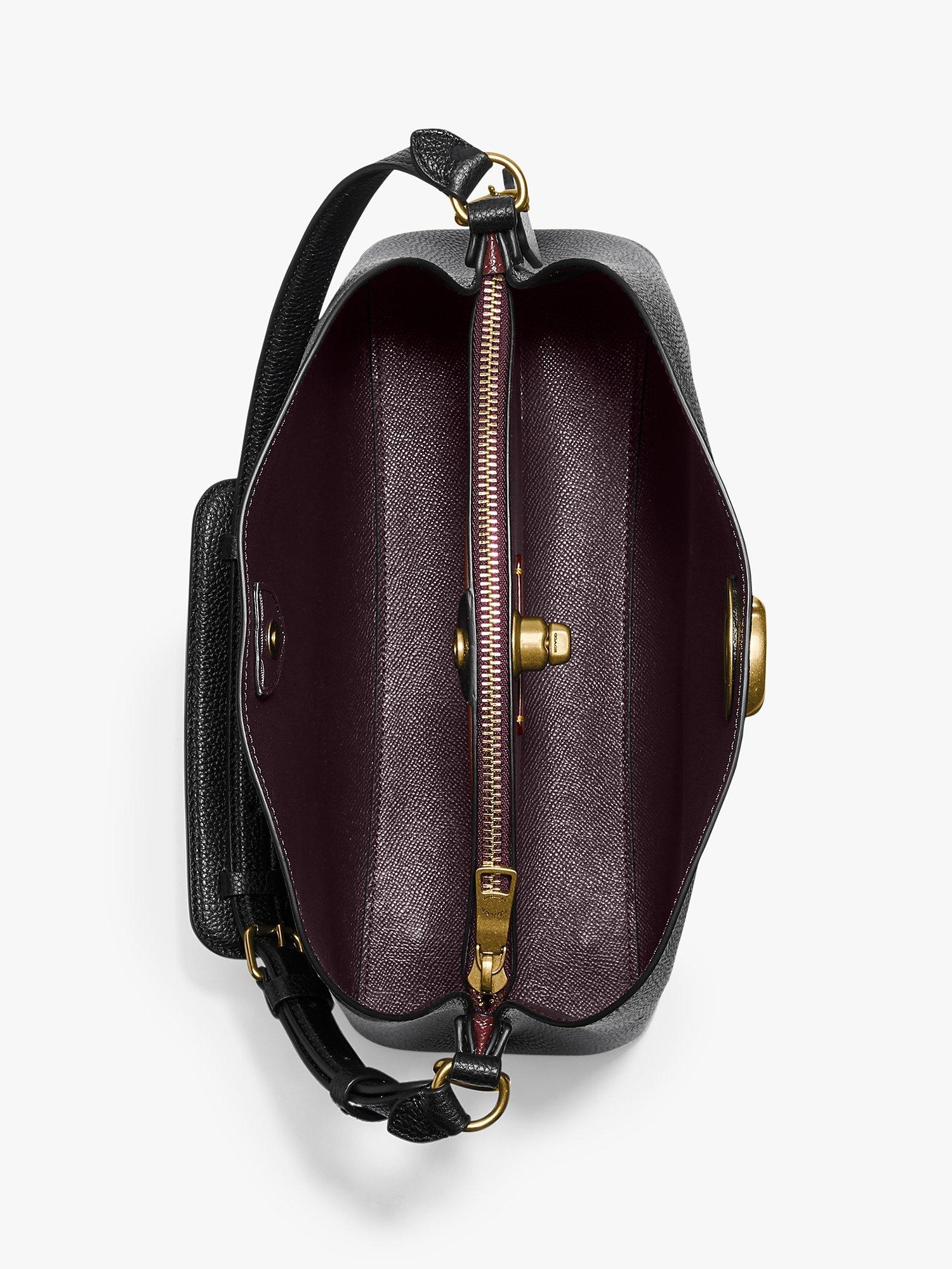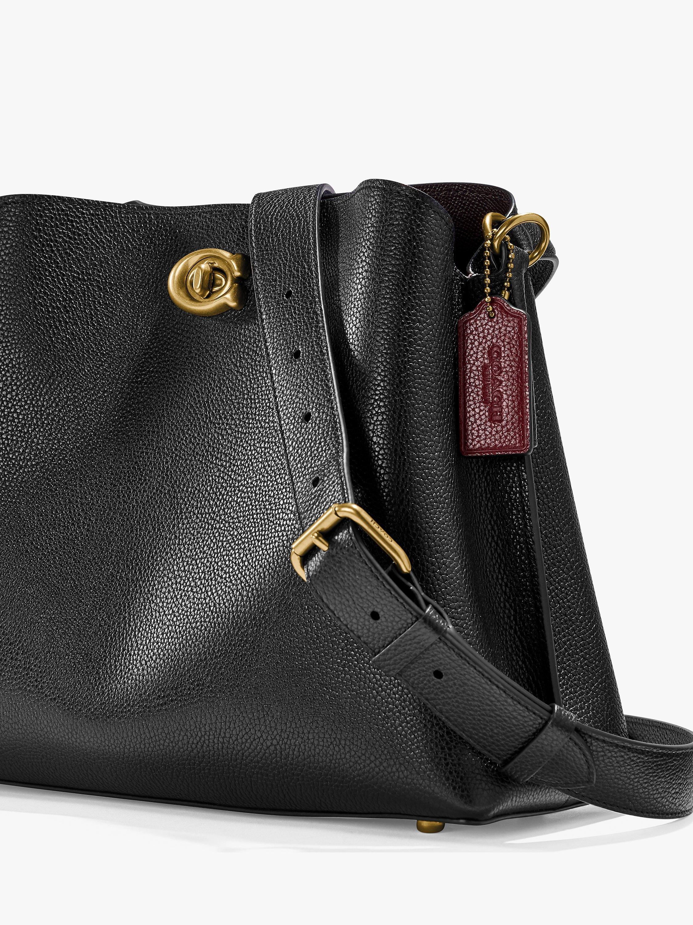Not too big, not too small, Willow is the perfect go-anywhere shoulder bag with space for all of your day-to-day essentials. Crafted of colour block polished pebble leather, it has an organised interior with one zip compartment, two open compartments and a snap pocket for small necessities. The roomy trapezoid shape secures with Coach's Signature turn-lock closure and can be carried by hand, on the shoulder or crossbody.