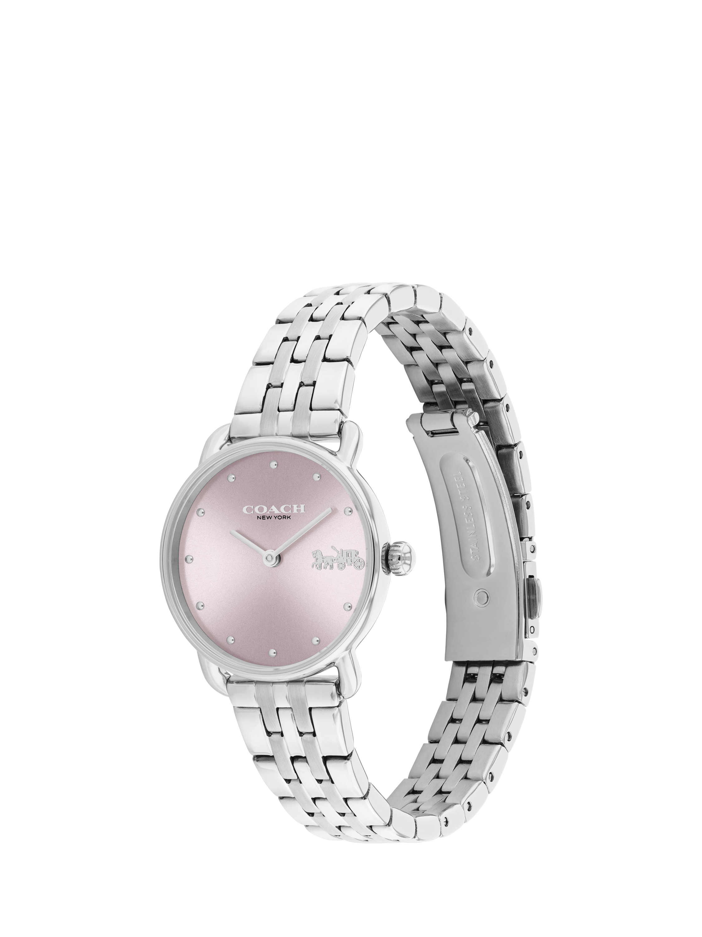 With clean lines and a modern minimalist sensibility, the Elliot by Coach is a true design classic ready for workdays and weekends. Finished with a brushed and polished 5 link bracelet strap, this stainless steel 28mm watch features a satin sunray dial and is water resistant to 3ATM.