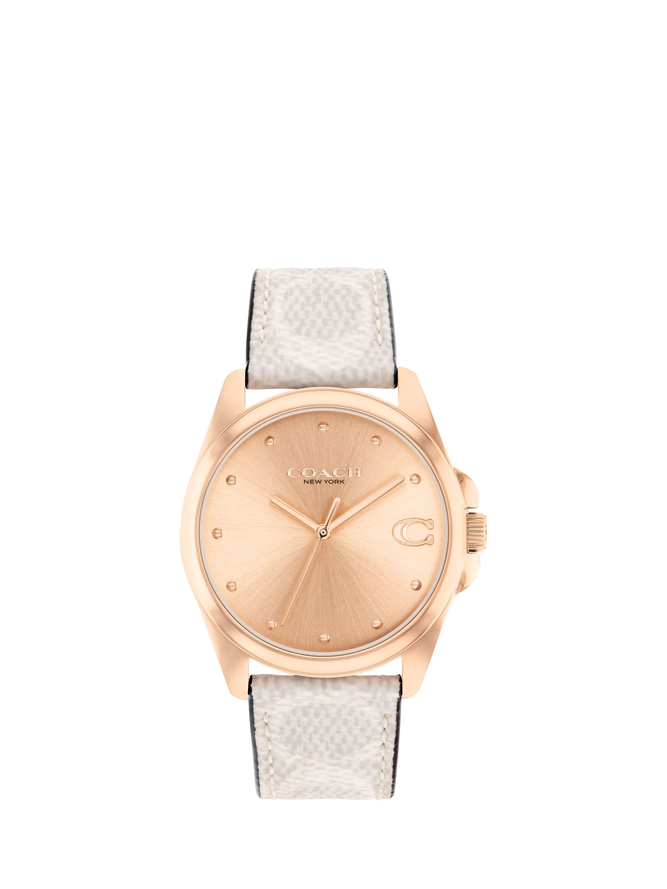 CoachWomen's Greyson Monogram C Coated Leather Strap Watch, White/Rose Gold